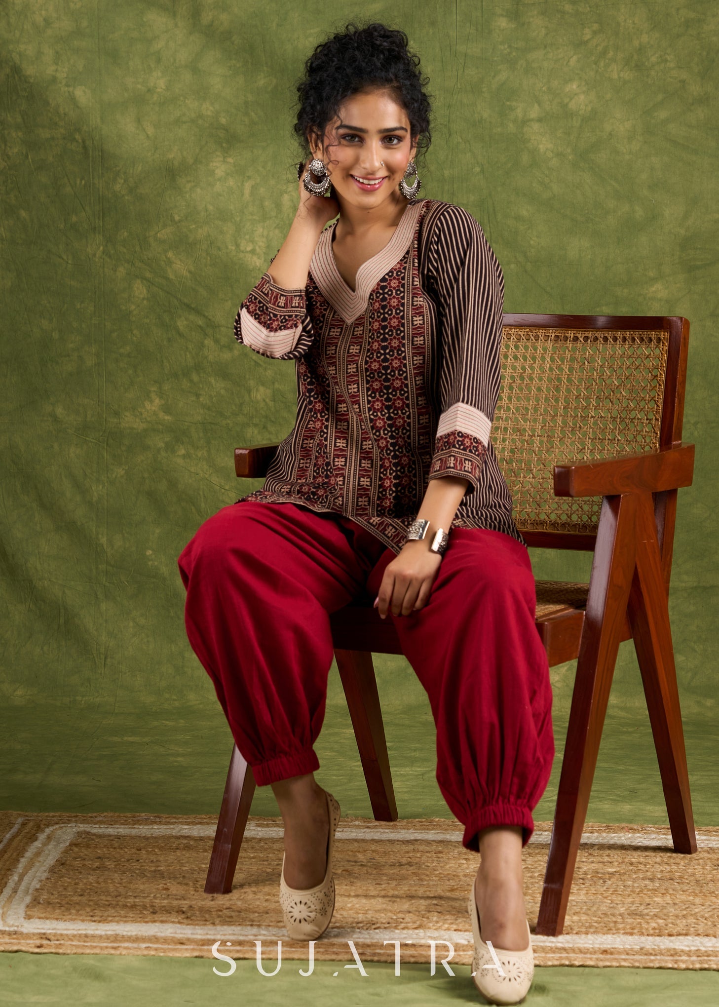 Beautiful Black Ajrakh Cotton Combination Top - Pant Optional