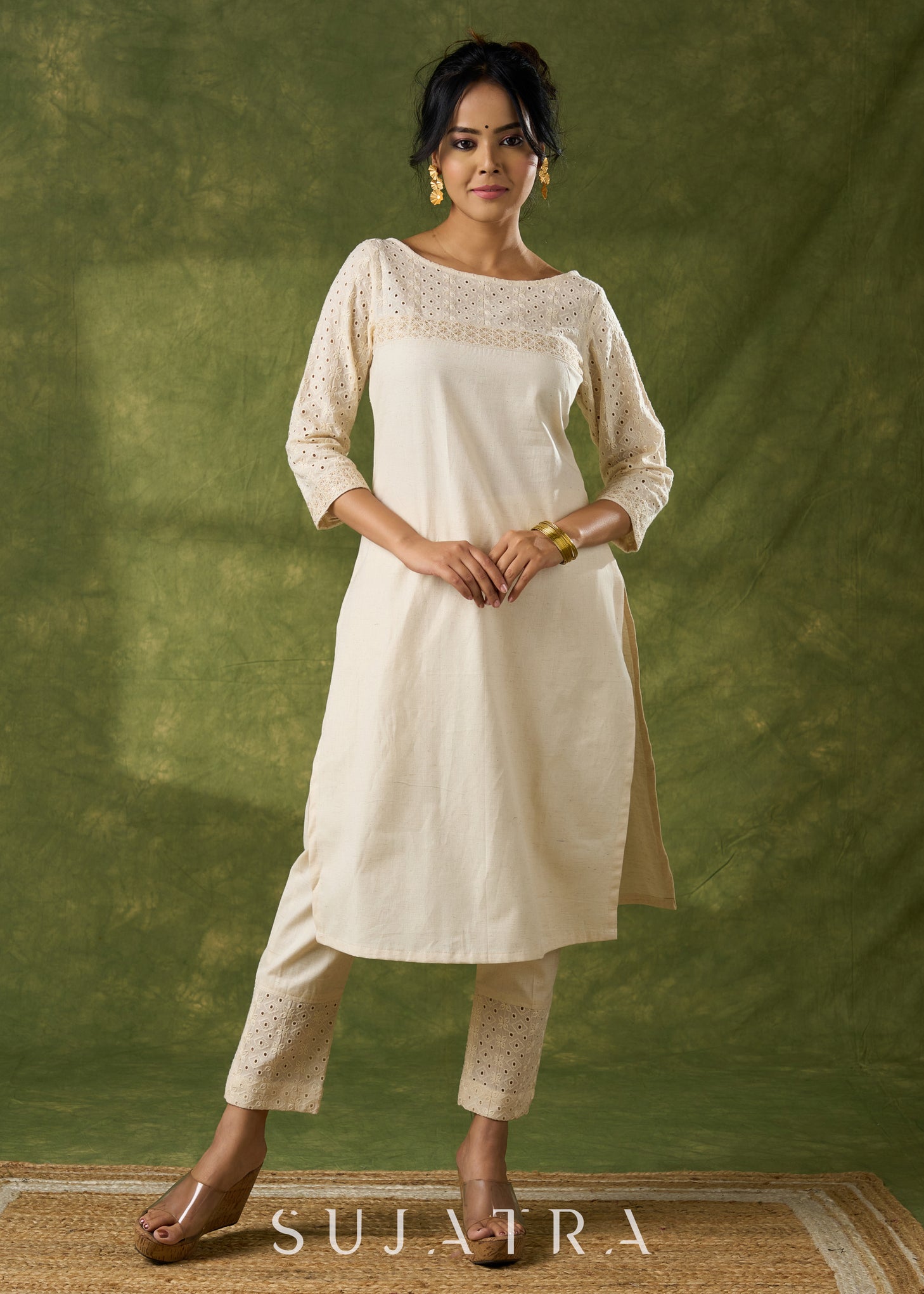 Elegant Cotton Hakoba off White Kurta - Pant Optional