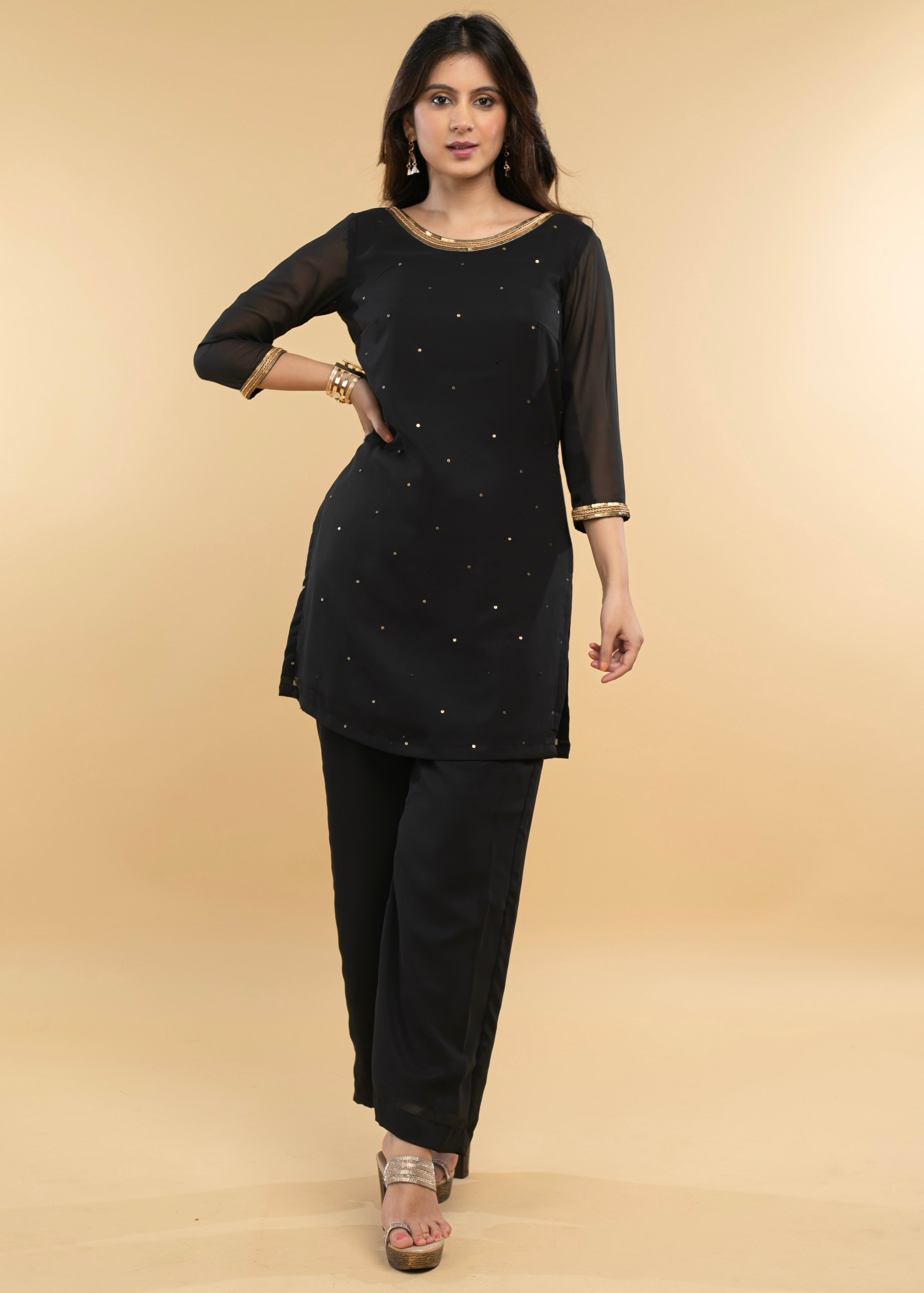 Exclusive Black Hand Embroidered Georgette Evening wearTunic - Georgette Pant Optional