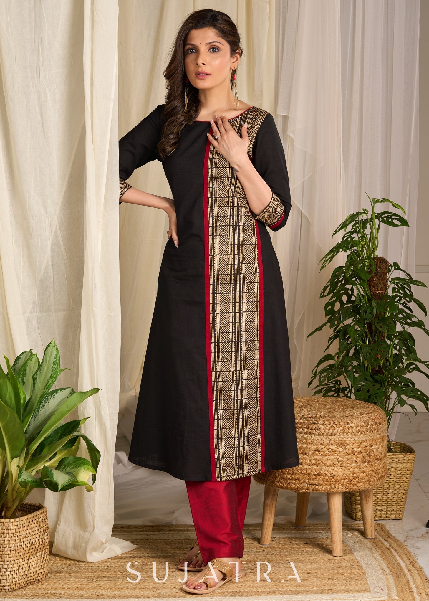 Exquisite Rayon kurta featuring intricate block prints and geometric artwork detailing