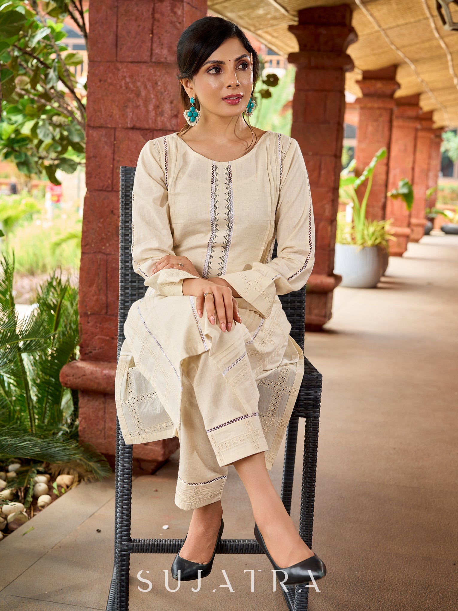 Graceful cotton-Hakoba kurta with pleated charm and lace detailing -pant optional