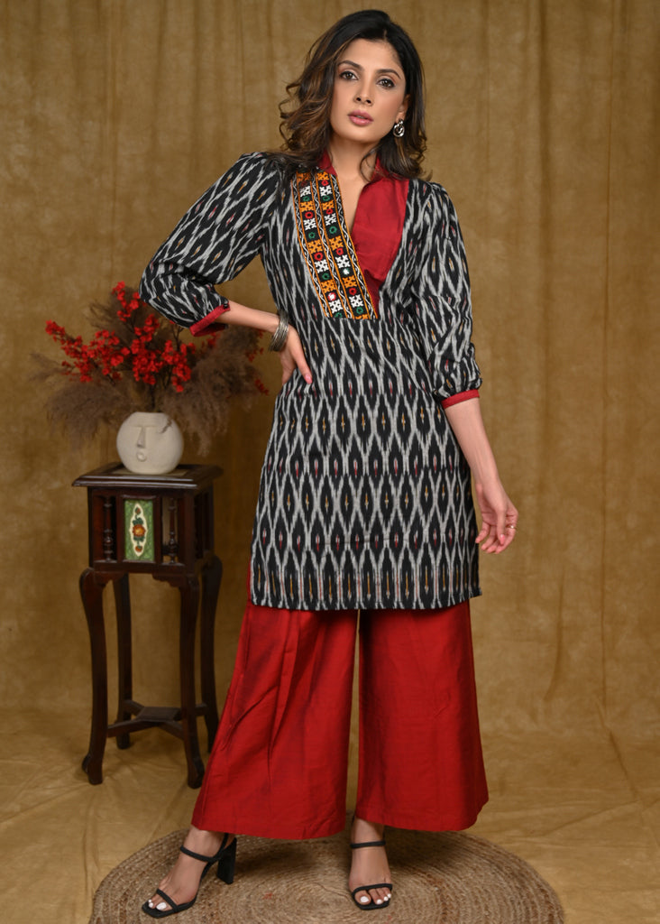 Graceful Ikat Tunic with Handmade kutch mirror Work