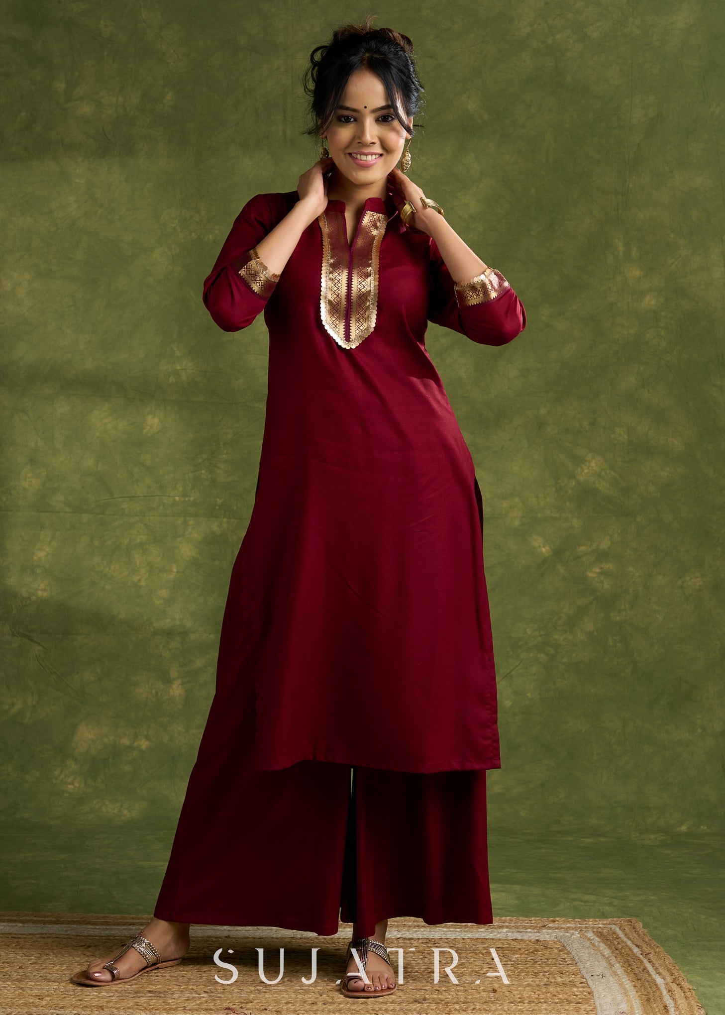 Graceful Maroon Rayon Flowy Kurta - Palazzo Optional