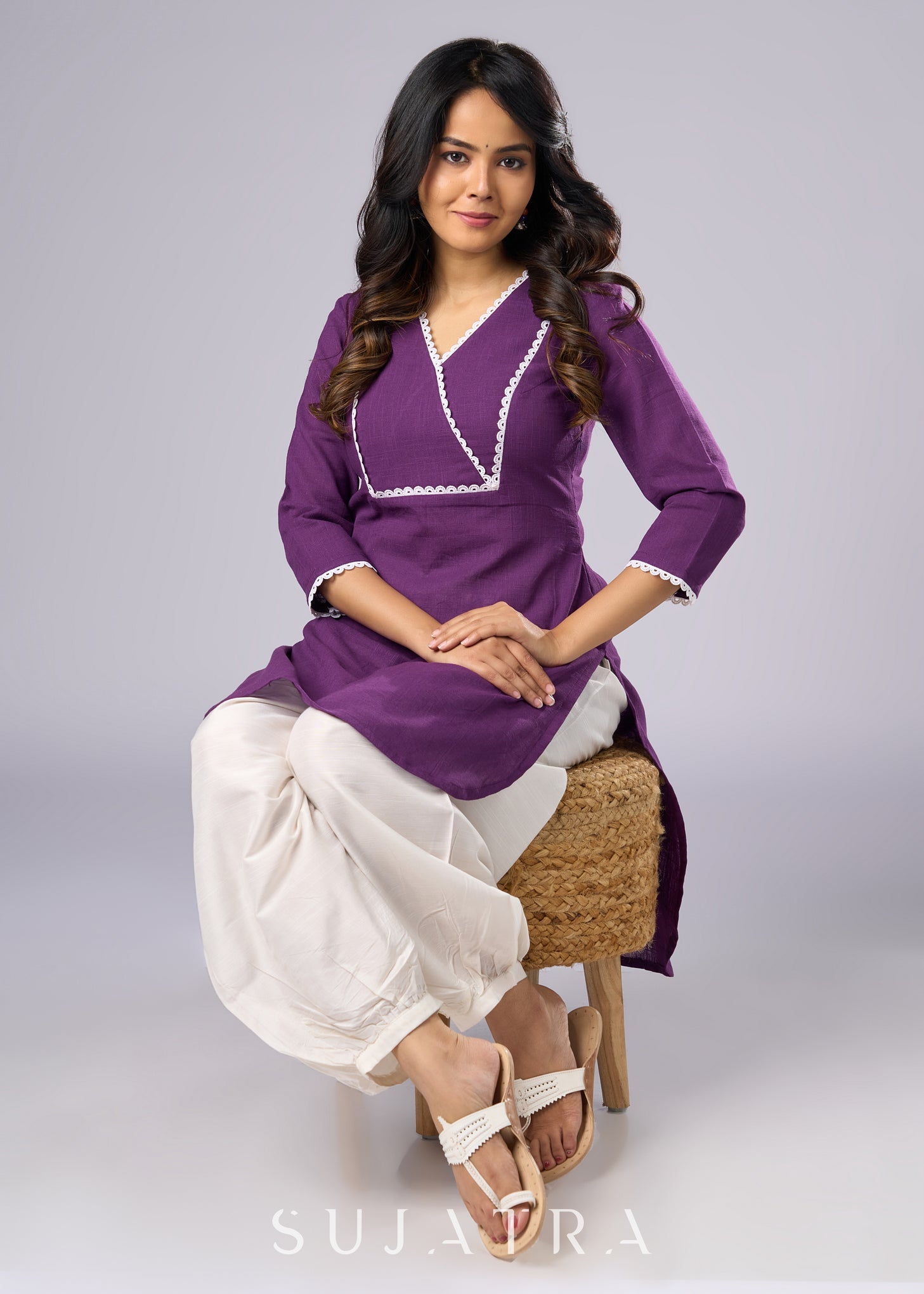 Regal Purple Cotton Tunic Highlighted with Delicate Lace Pant Additional