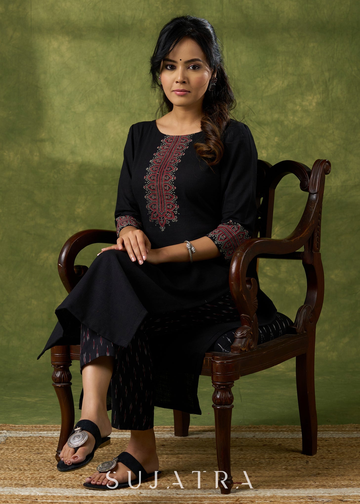Sleek Black Cotton Hand Block Printed Kurta - Pant Optional