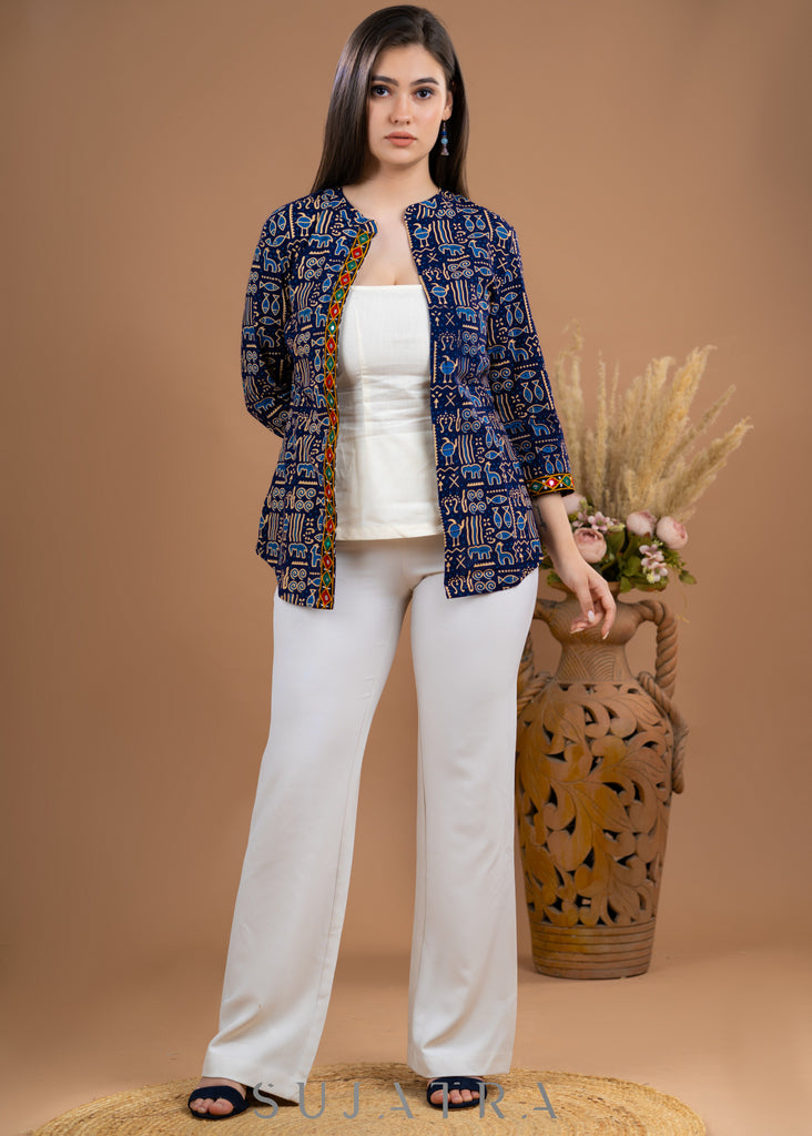 Smart cotton Ajrakh kutch embroidered top - Off white inner optional