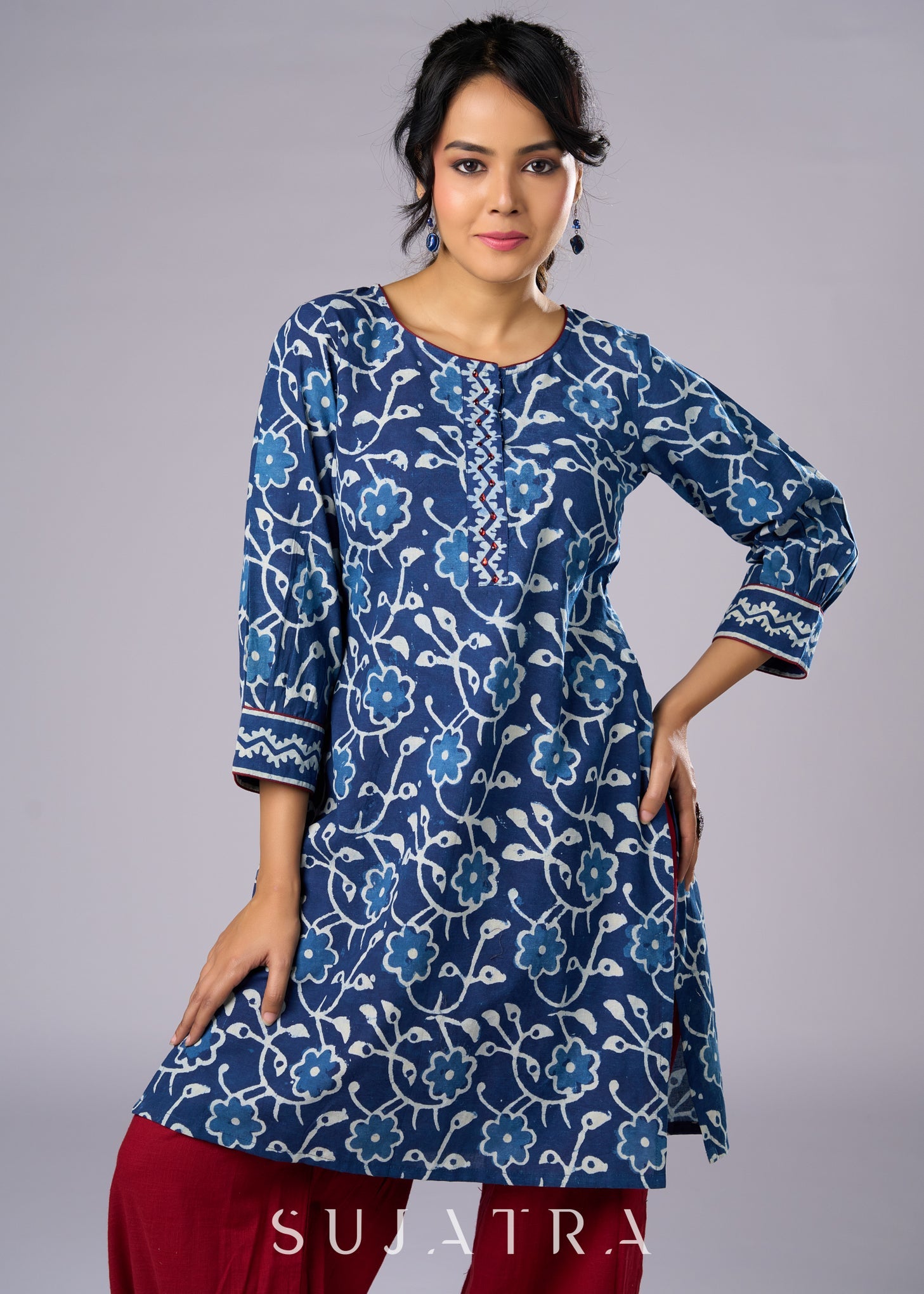 Stylish Indigo Cotton Tunic with A Flattering Silhouette Pant Additional