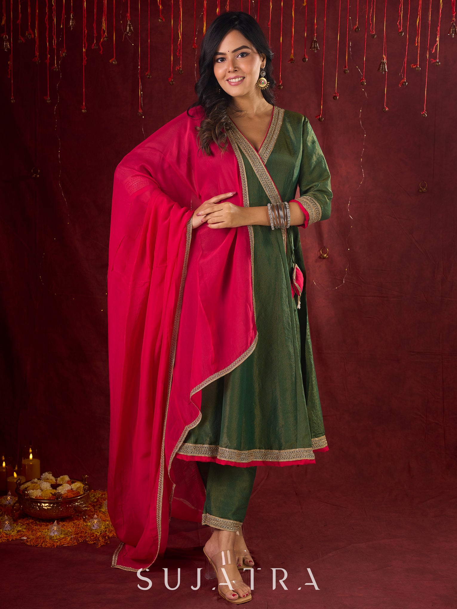 Vibrant Mustard Cotton-Silk Kurta with Pink Highlights & Subtle Gota Patti Work