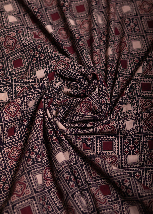 Maroon Block Printed Ajrakh Cotton Fabric