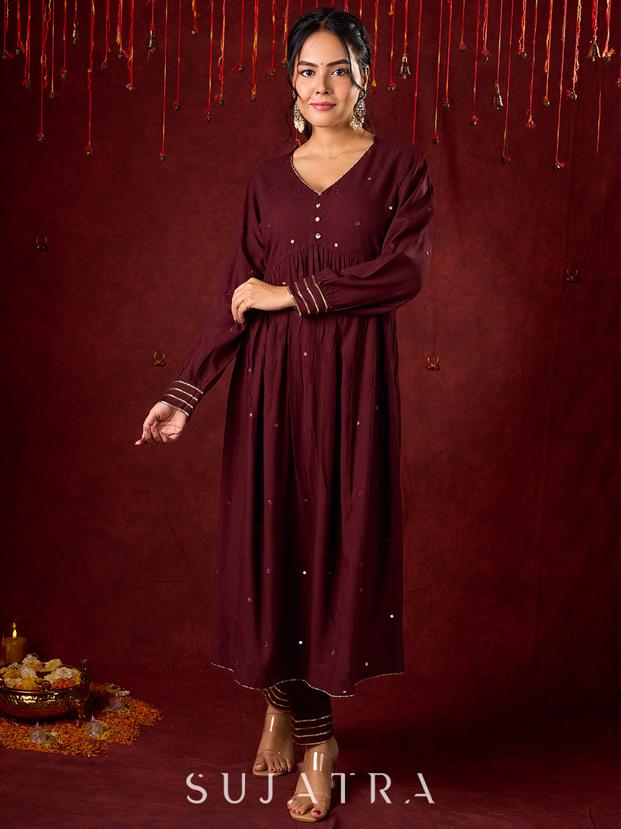 Elegant Rayon Kurta Featuring Handcrafted Mirror Embroidery - Pant and Dupatta optional