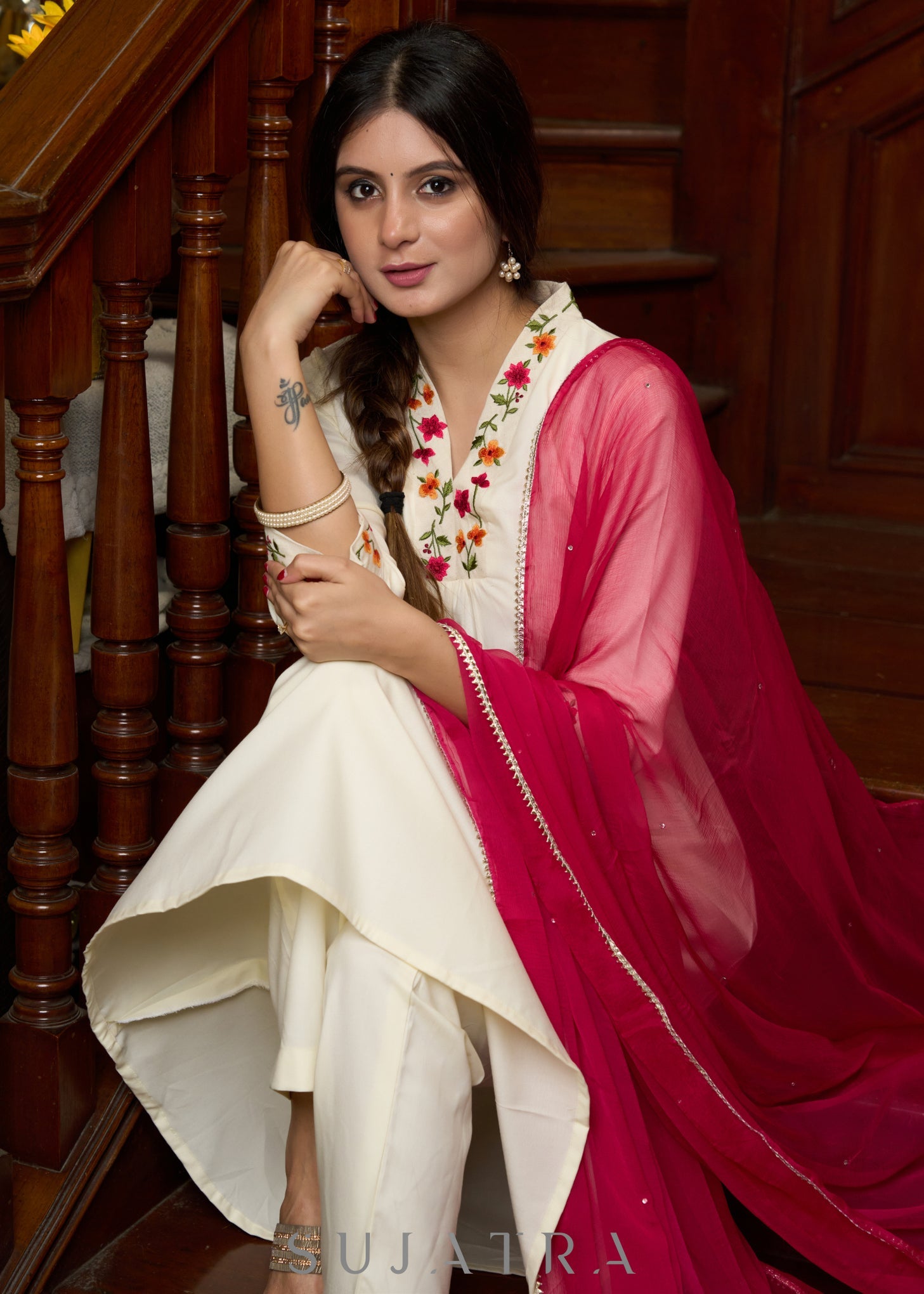 Elegantly crafted off-white rayon kurta with intricate embroidery