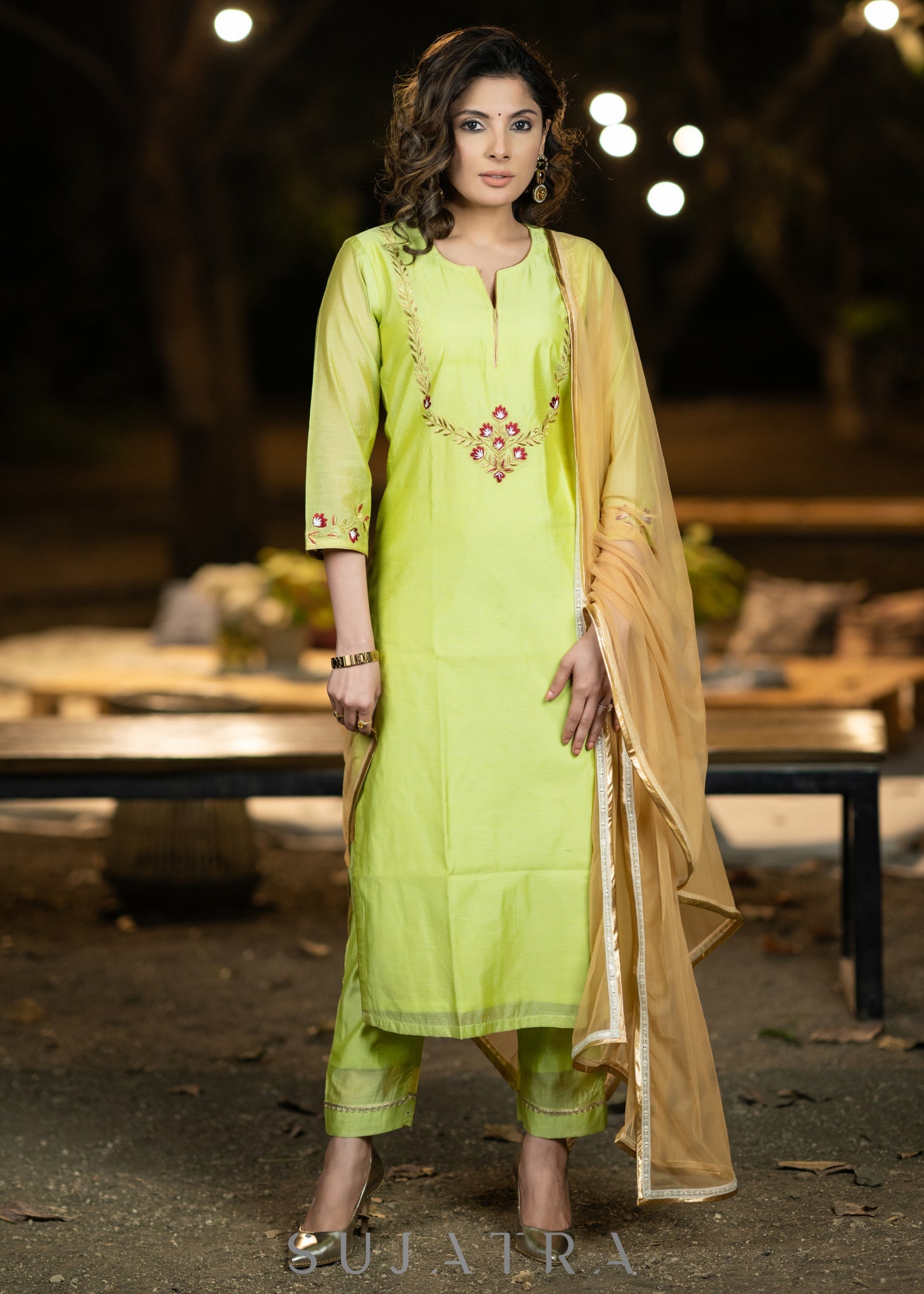 Embroidered Lemon Chanderi kurta
