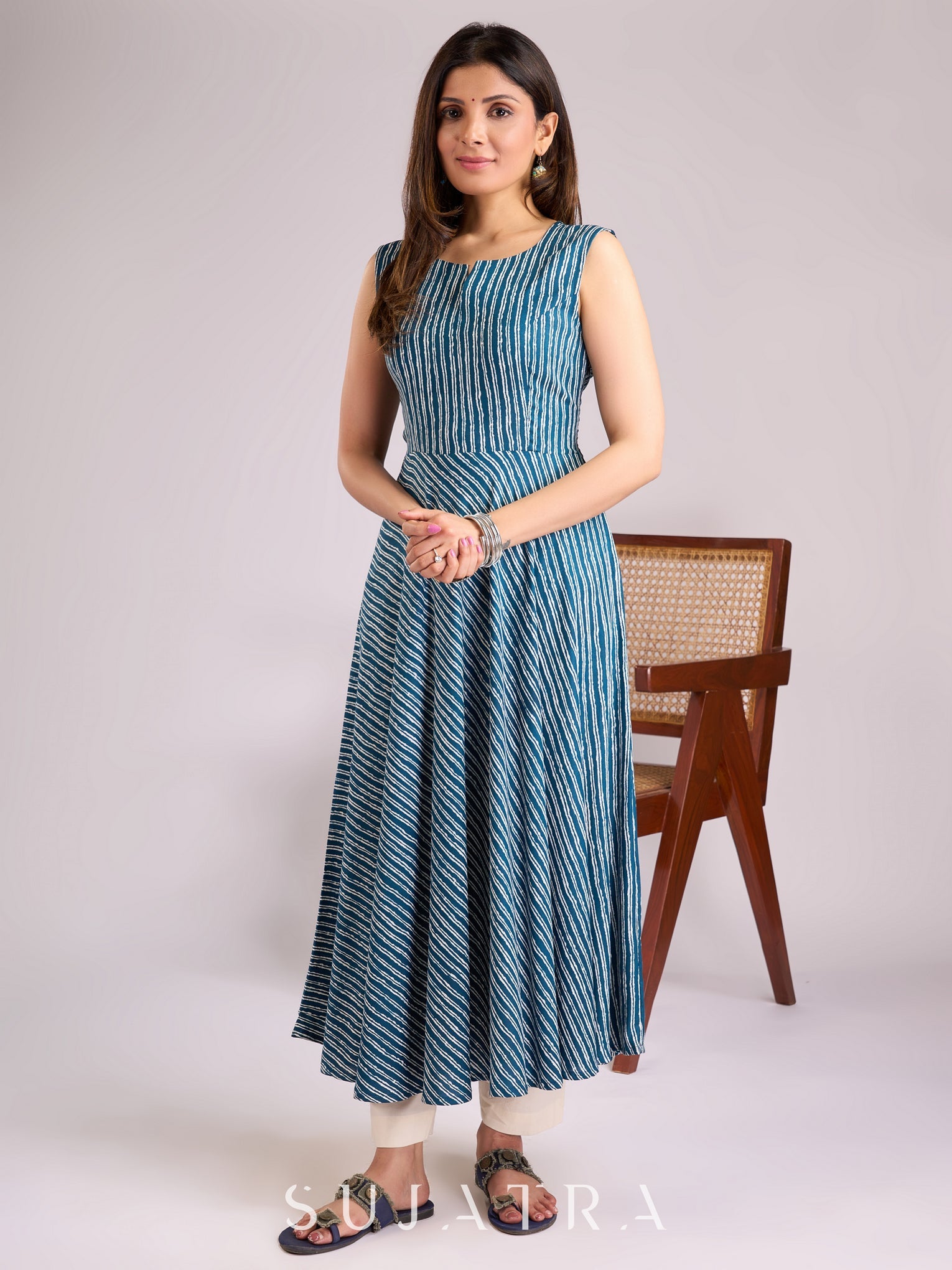 Graceful Blue Striped Viscose Flared Sleeveless Kurta