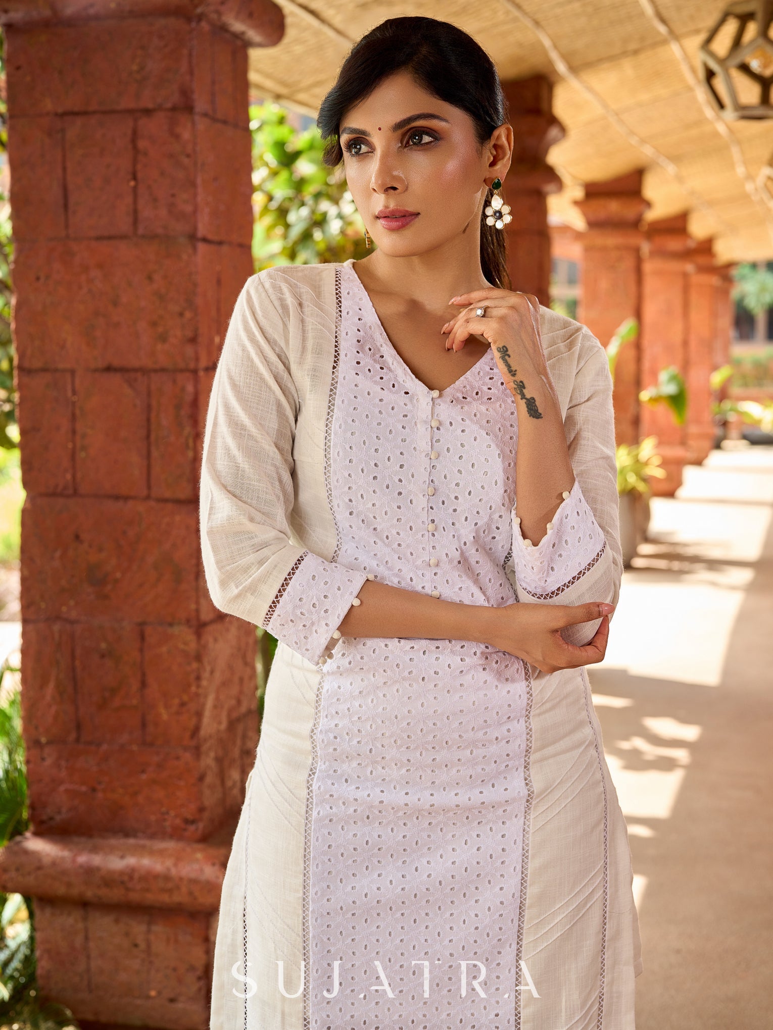 Stylish white cotton Hakoba combination kurta featuring intricate surface texture - pant optional