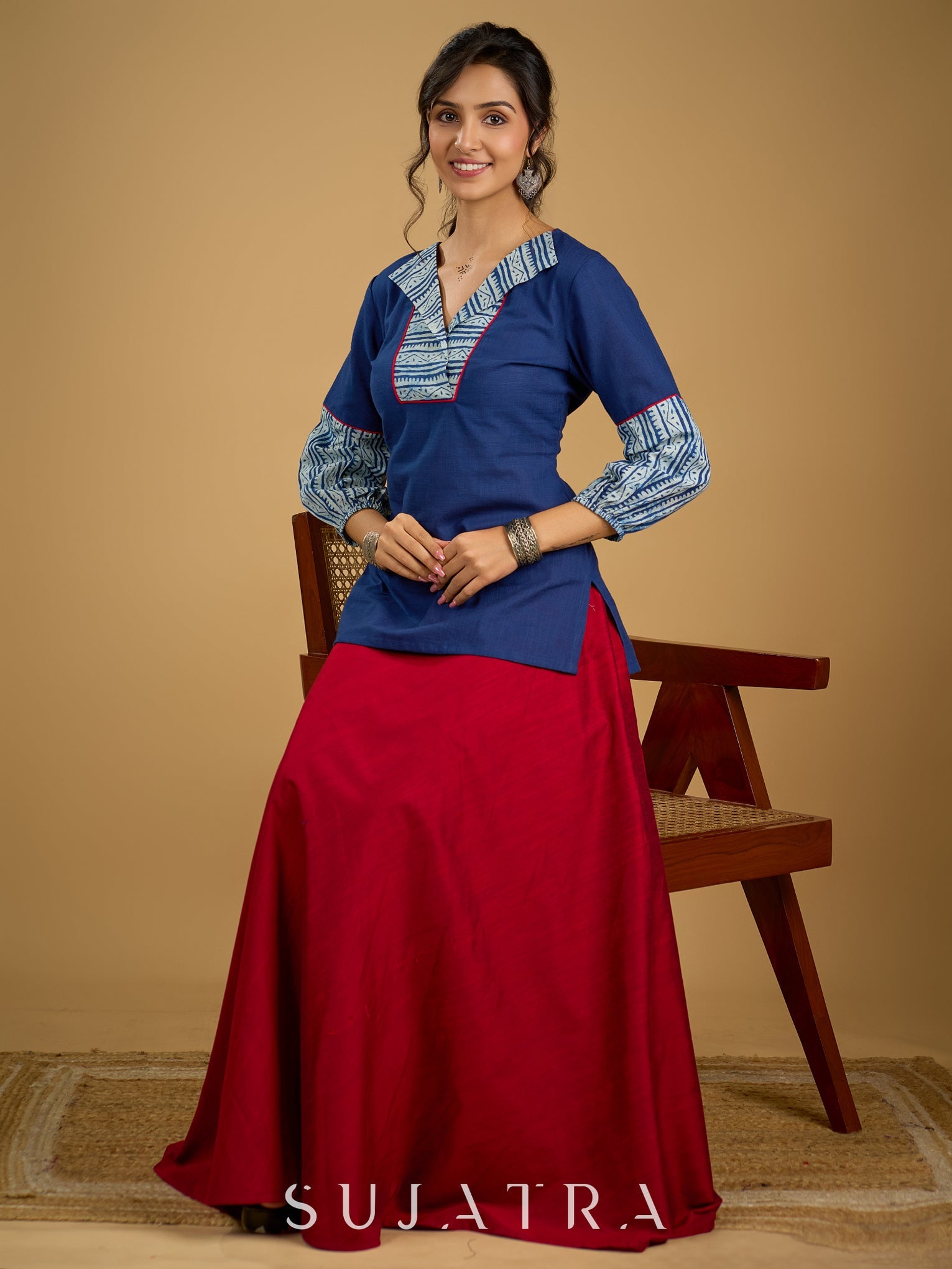 Classic indigo cotton top featuring smart and elegant collar design - skirt optional