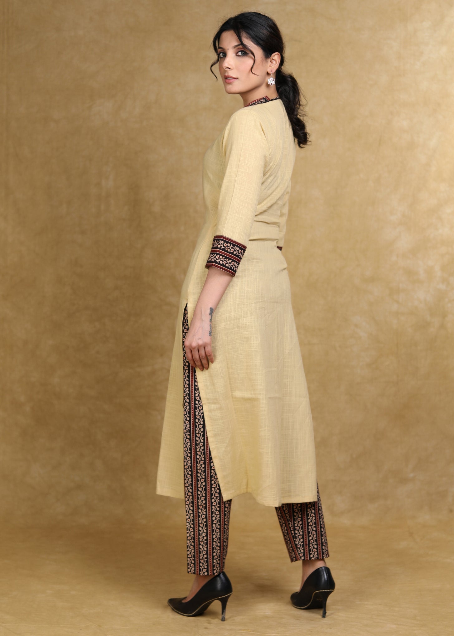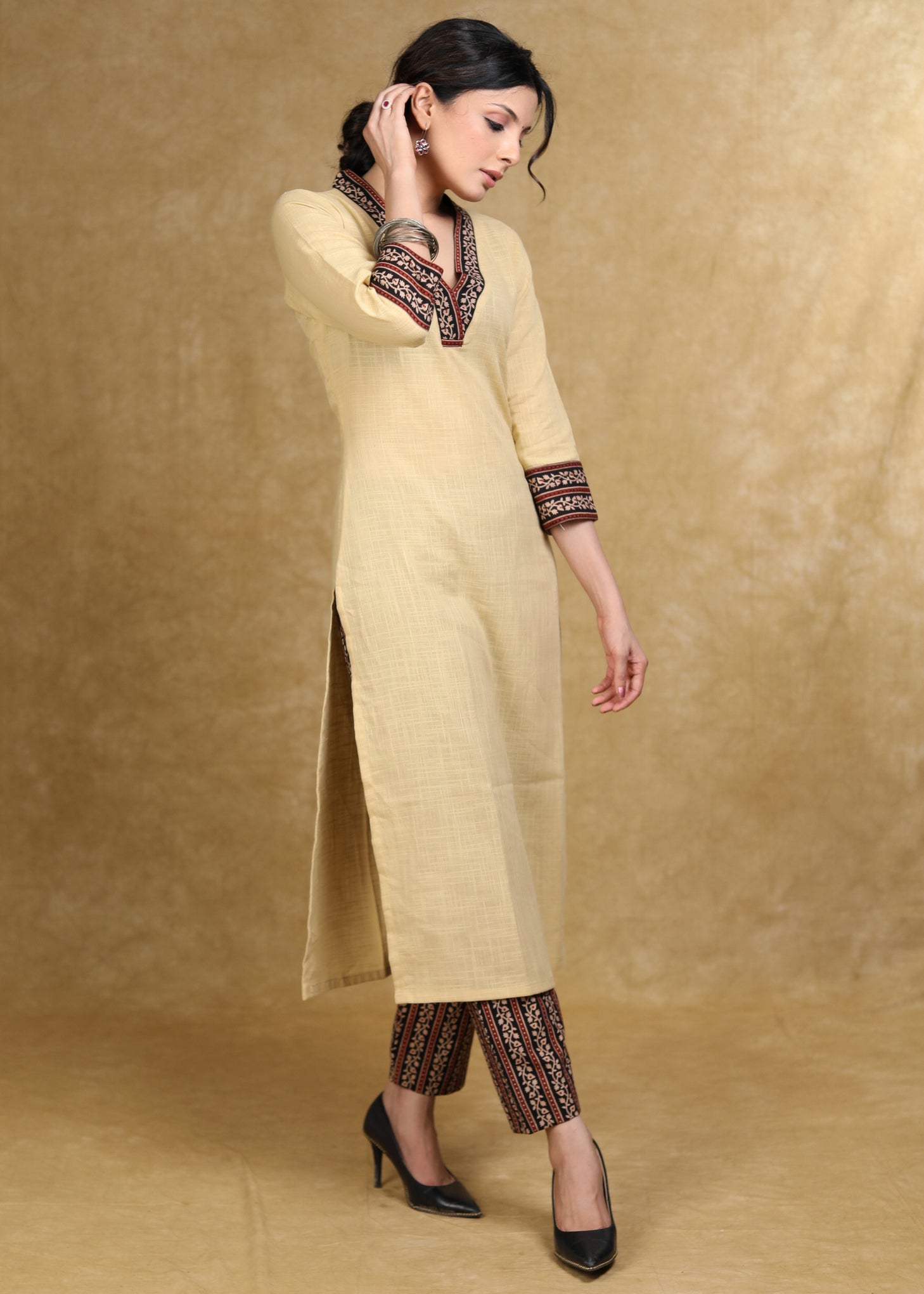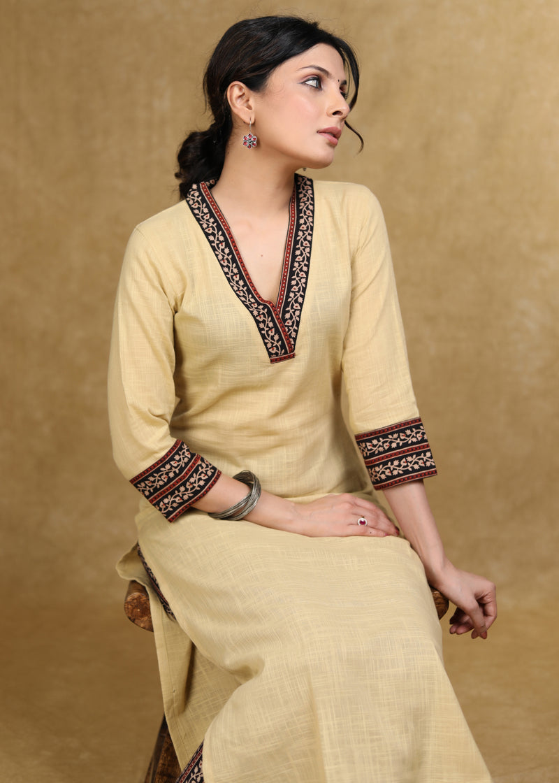 Classy Light Caramel Cotton Kurta with Ajrakh Combination
