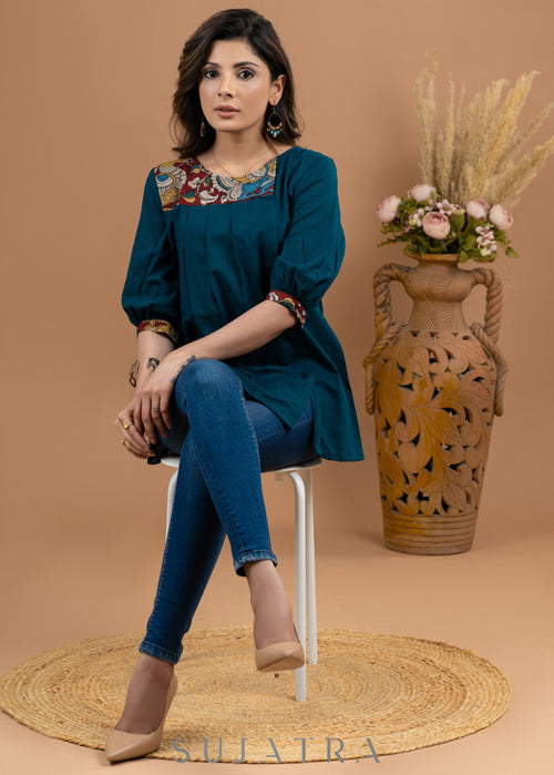 Exclusive cotton Top with round mirror work and Ikkat collar