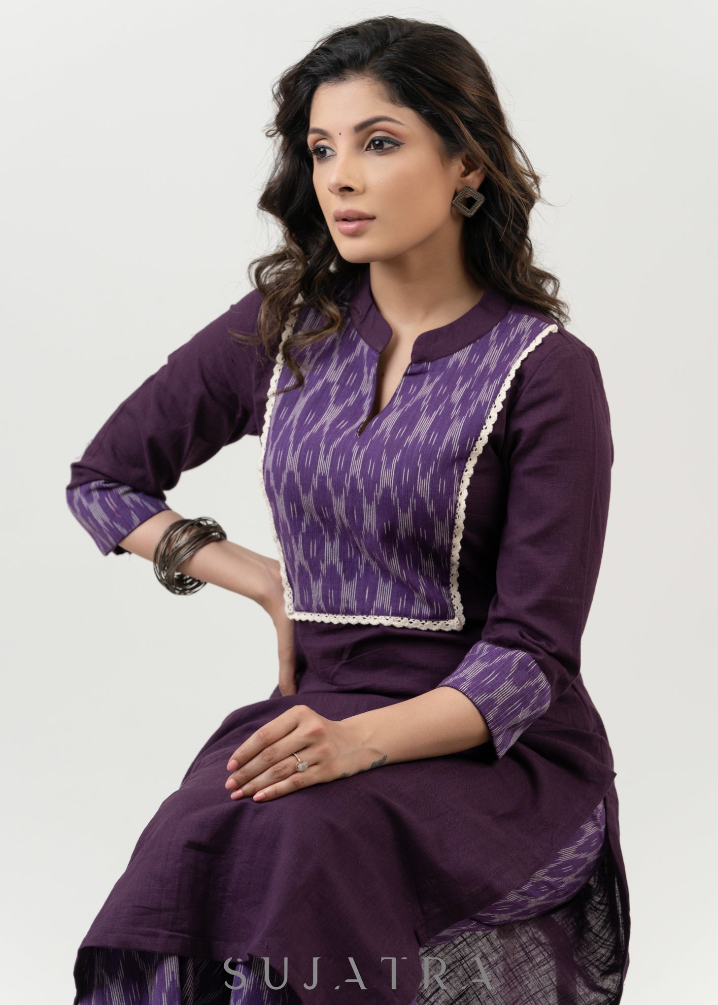 Purple Cotton Ikkat Yoke Kurta - Pant Optional
