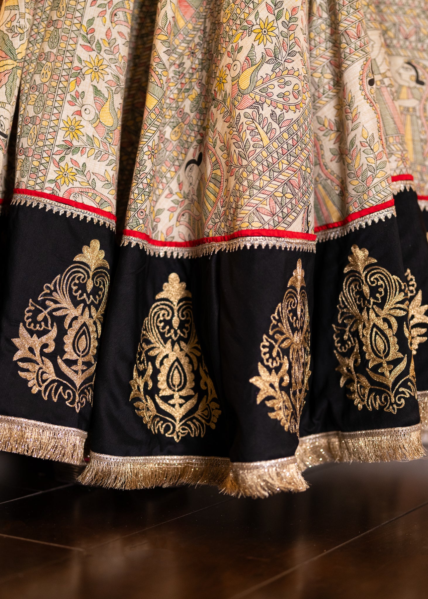 Exclusive Madhubani printed embroidered Lehenga with cotton silk dupatta