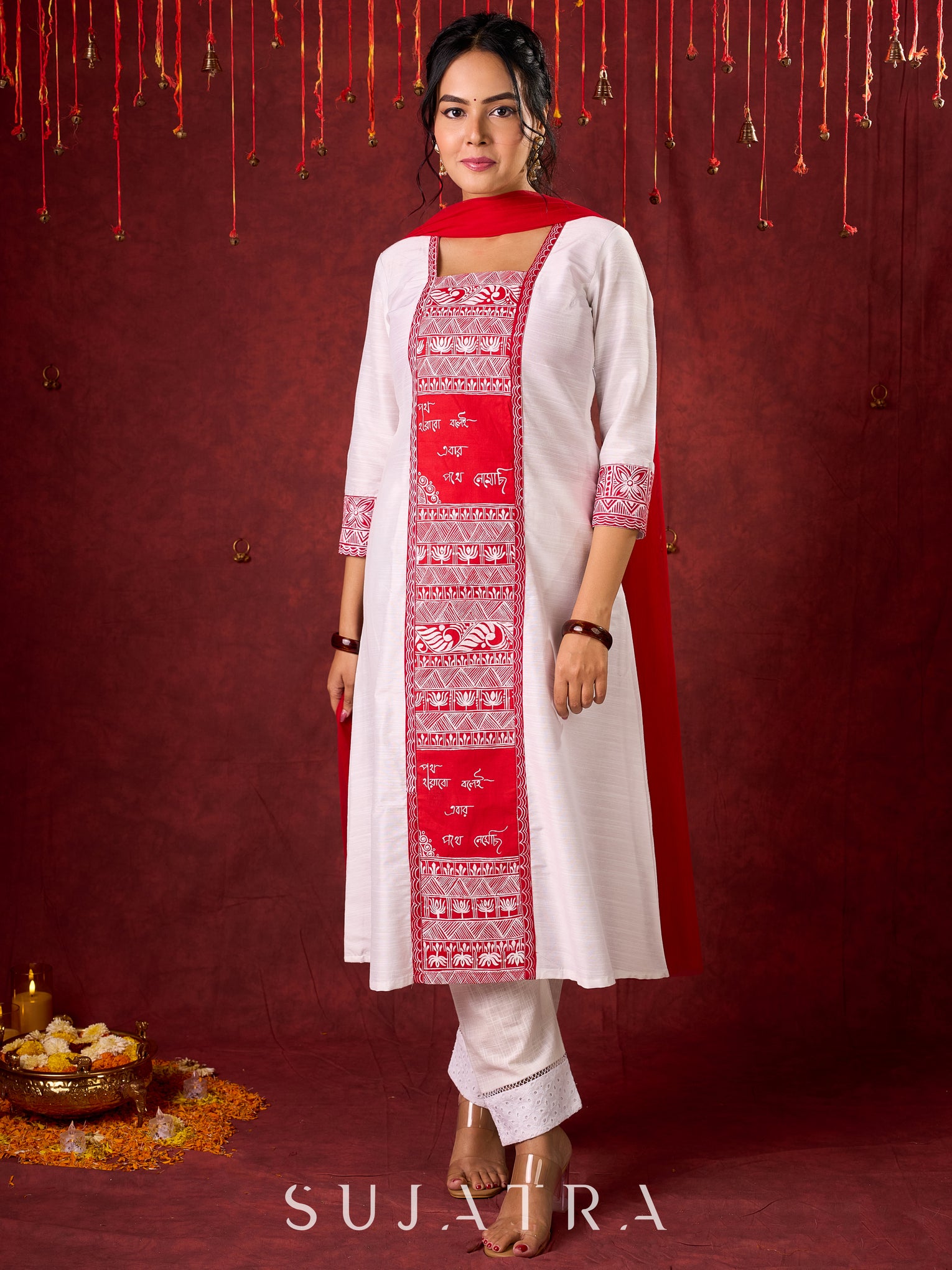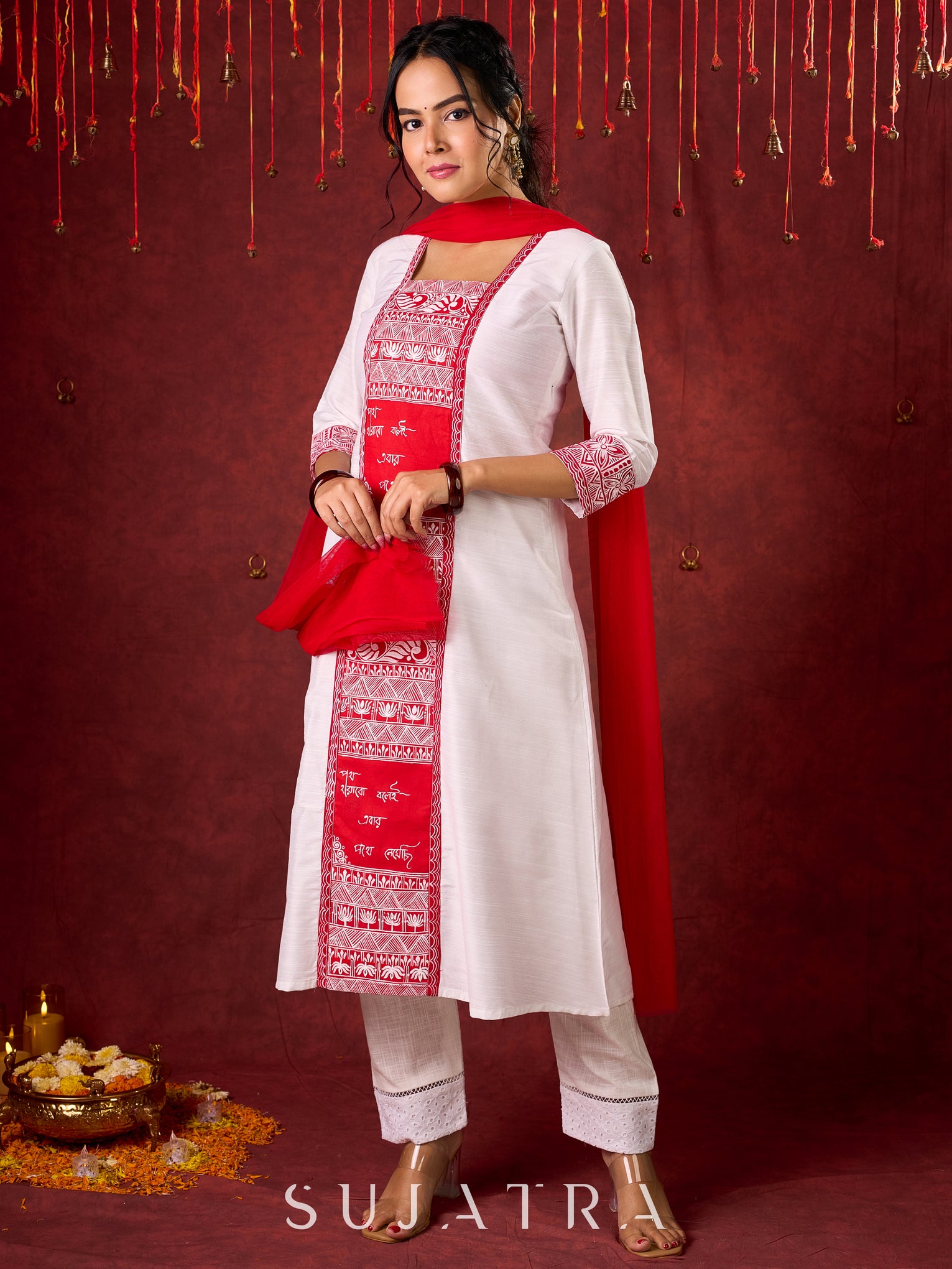 Beautiful hand-painted kurta in soft cotton-silk, perfect for special occasions - Pant and Dupatta optional.