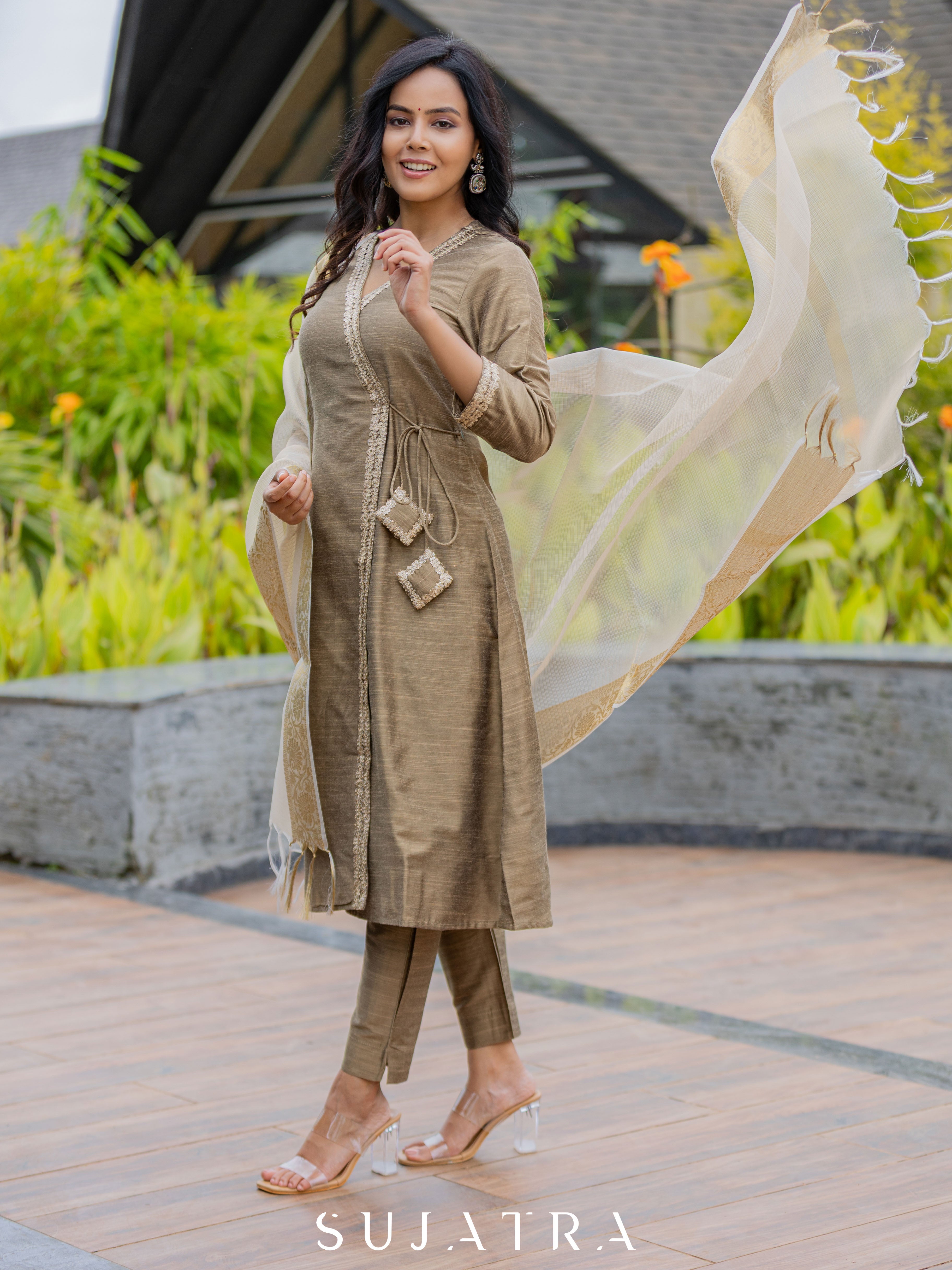 Noorani Cotton Silk Angarkha Kurta with Exquisite Tassle Detailing