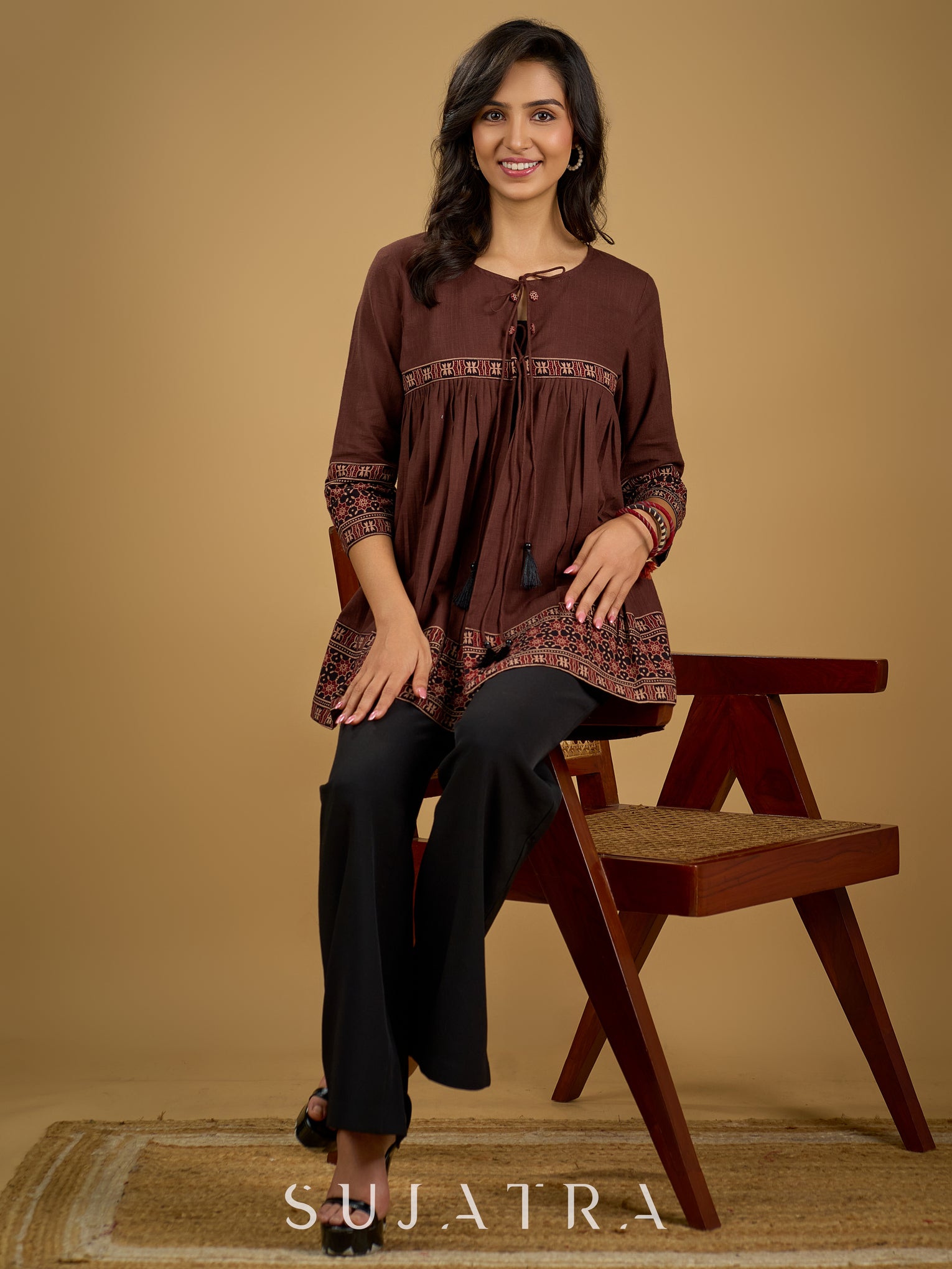 Beautiful brown cotton ajrakh combination top