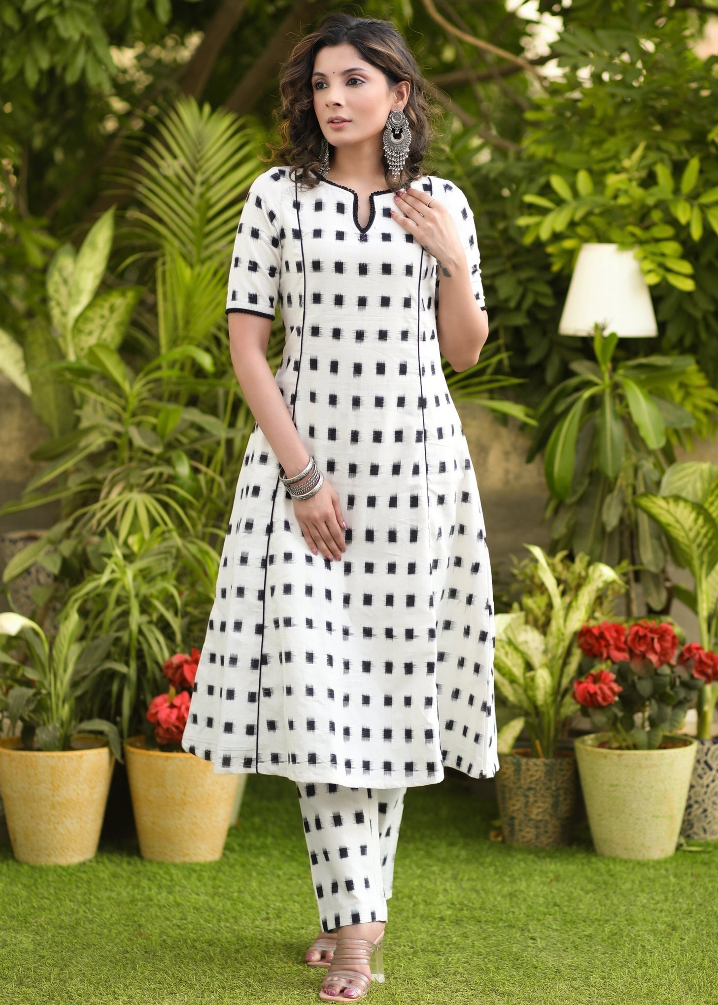 Beautiful Cotton White pure double Ikat Kurta - Pant Optional