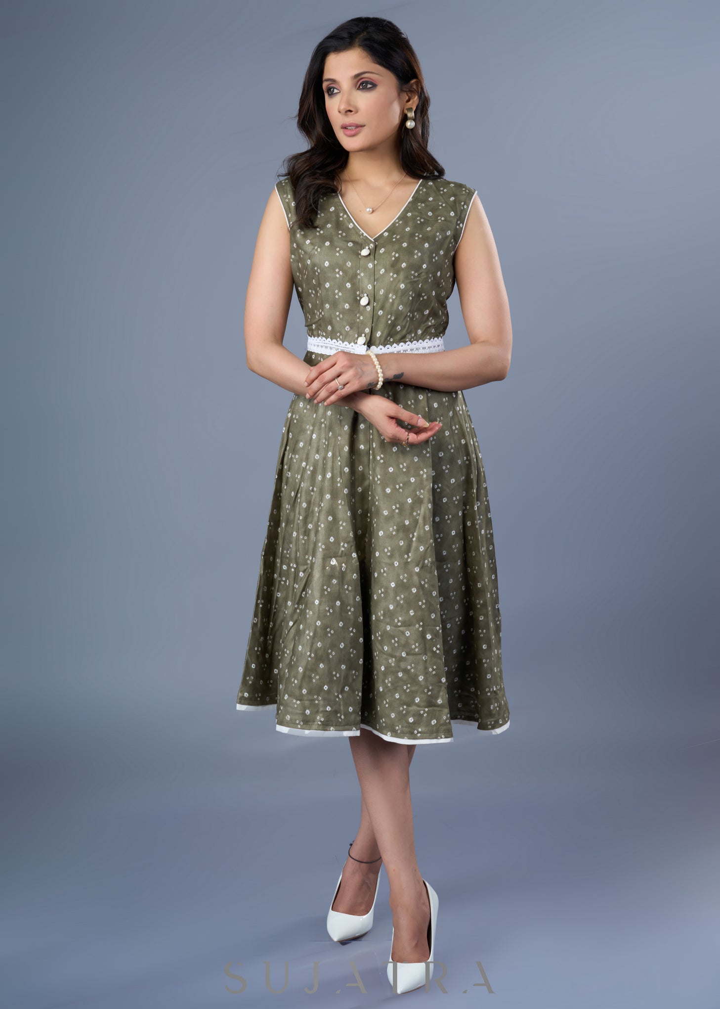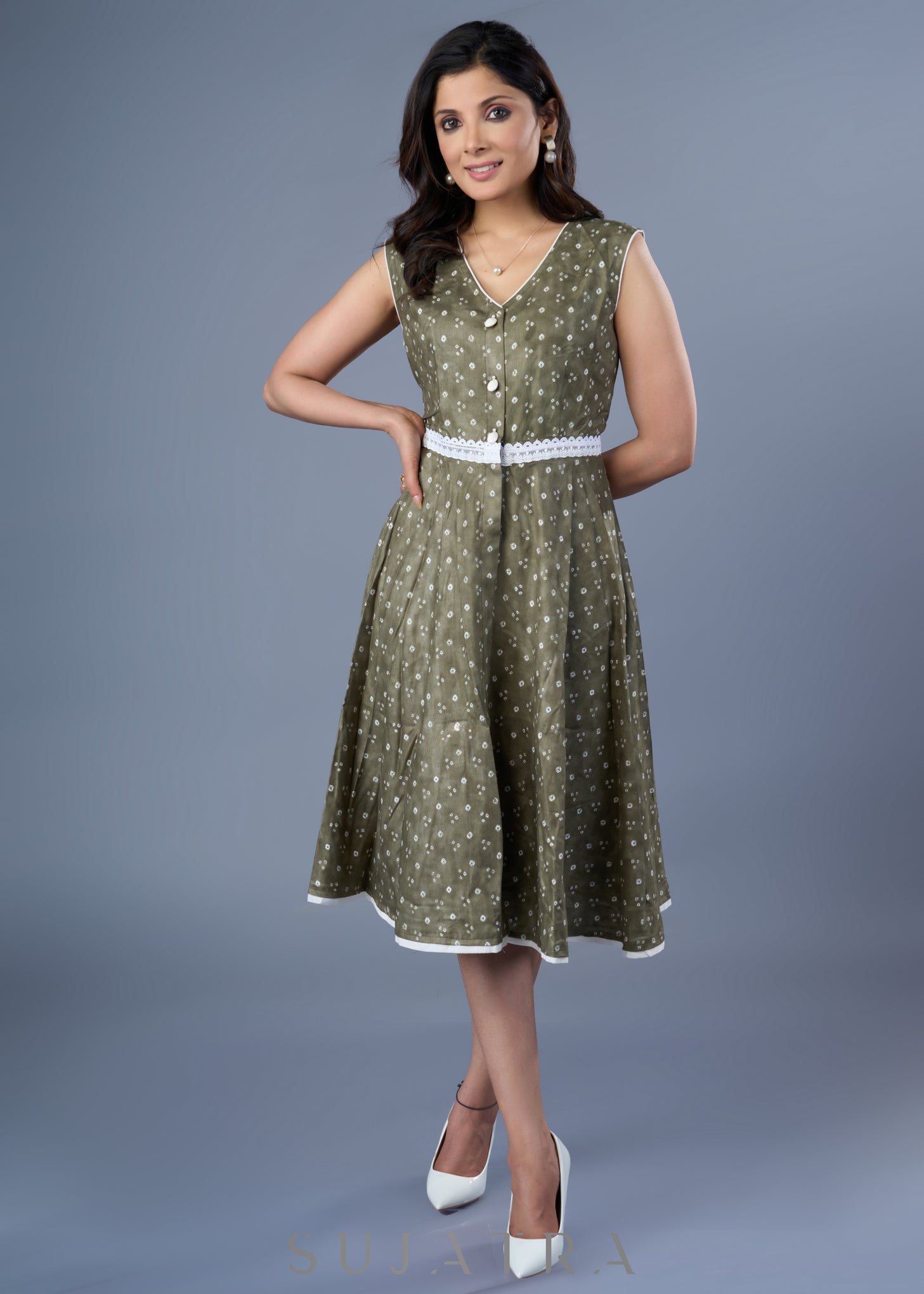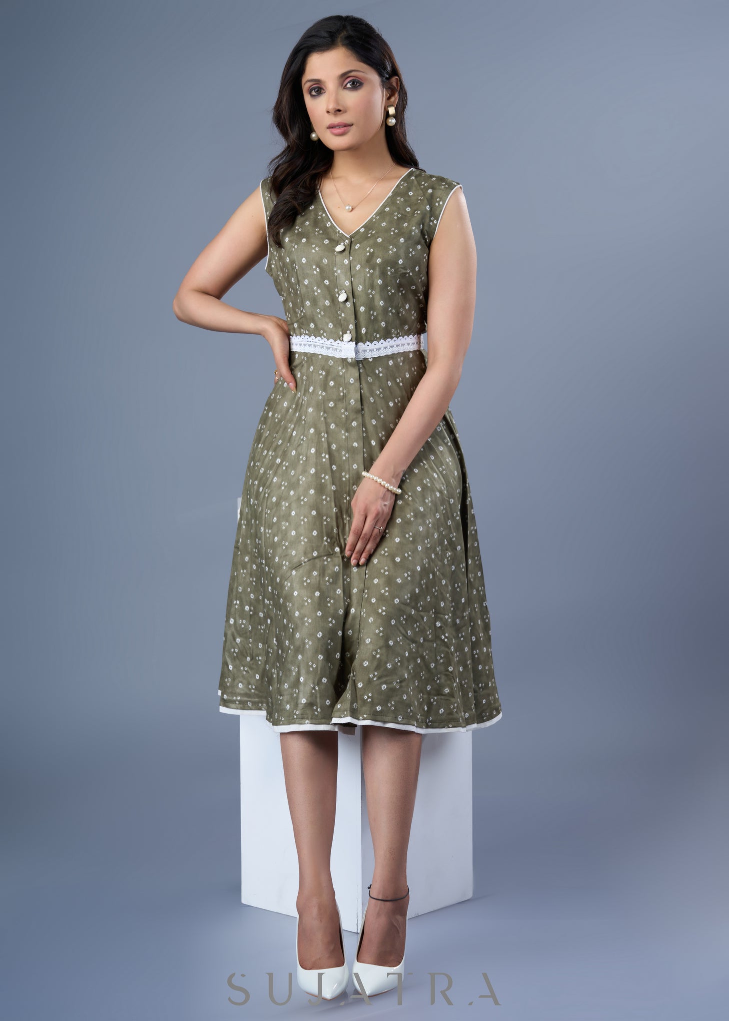 Beautiful Fern Green Rayon Printed Dress