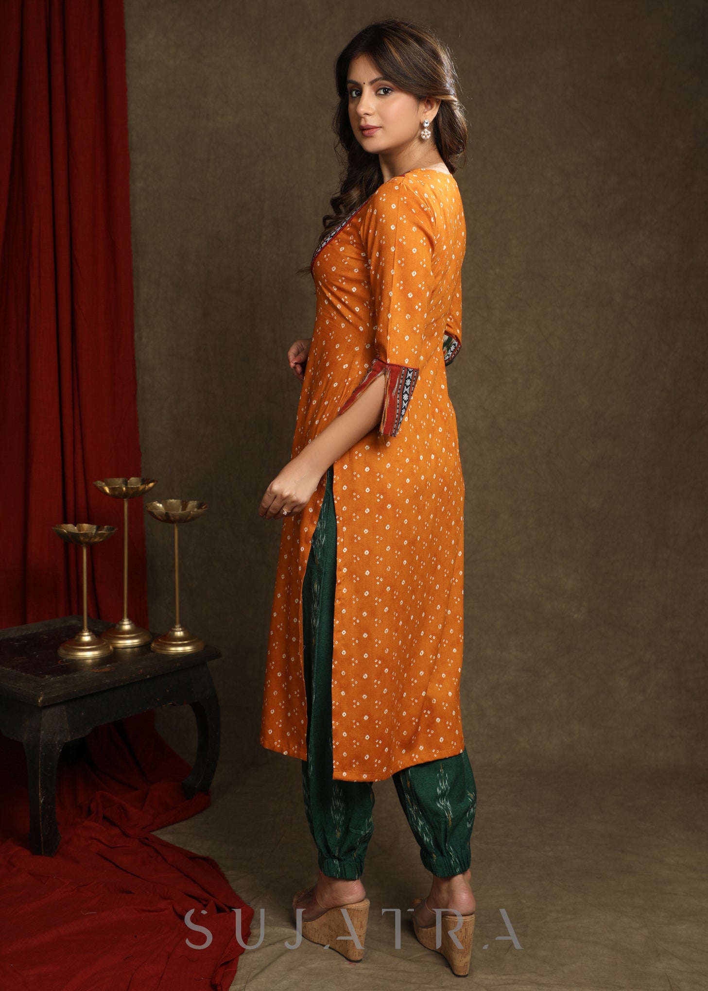 Beautiful Mustard Rayon Bandhani With Ikat Combination Kurta - Pant optional