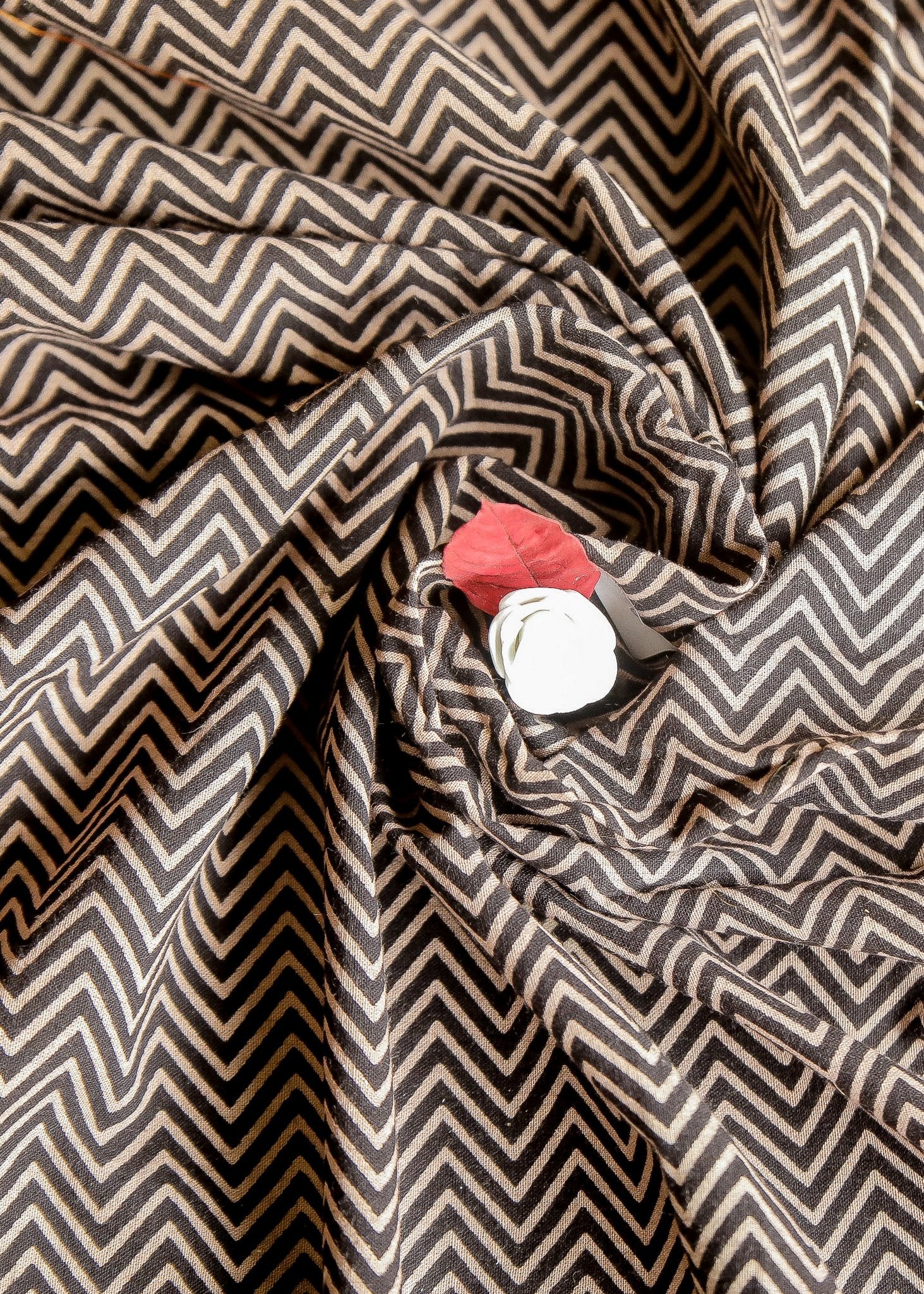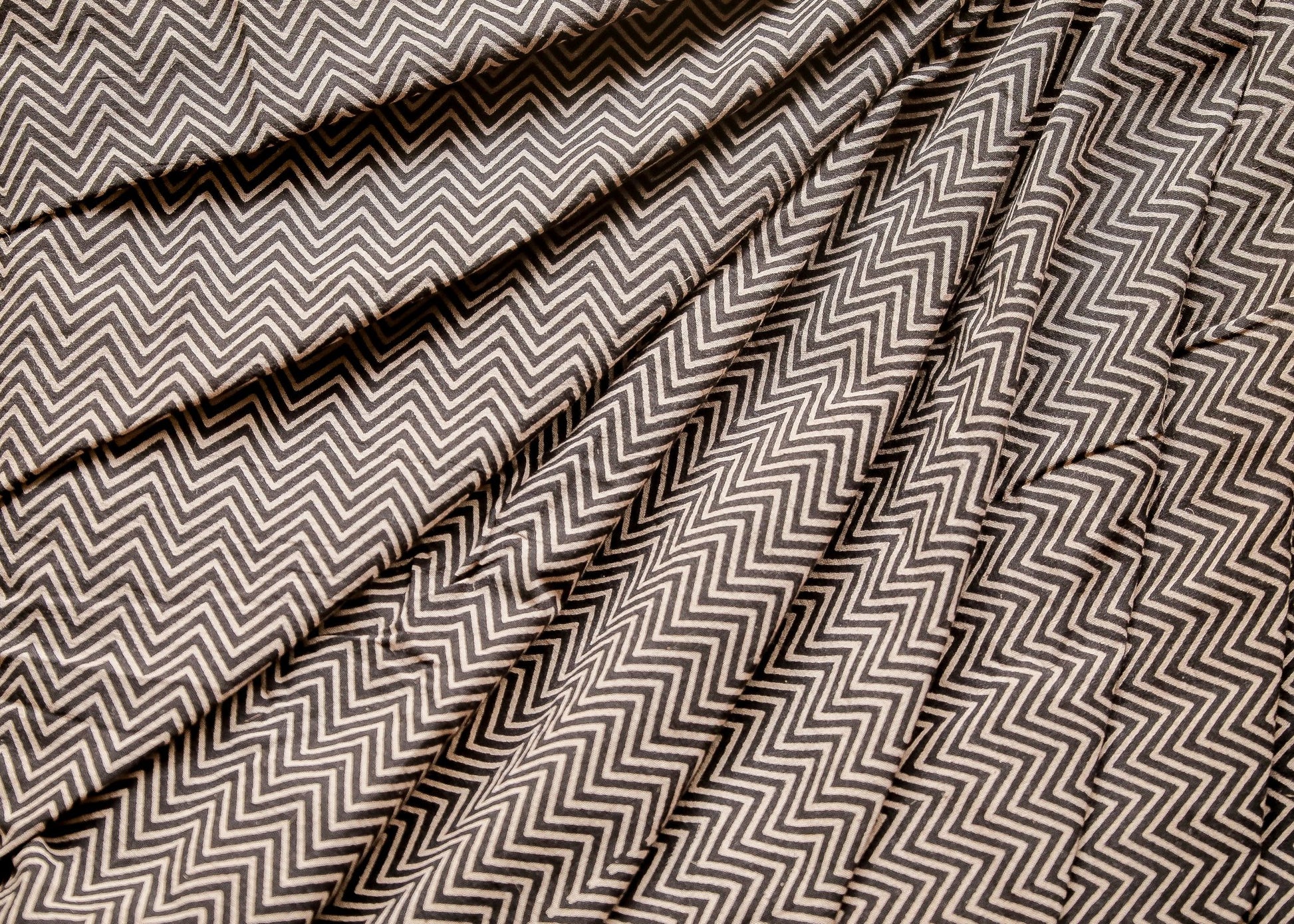 Black Block Printed Ajrakh Cotton Fabric with Zig Zag Design