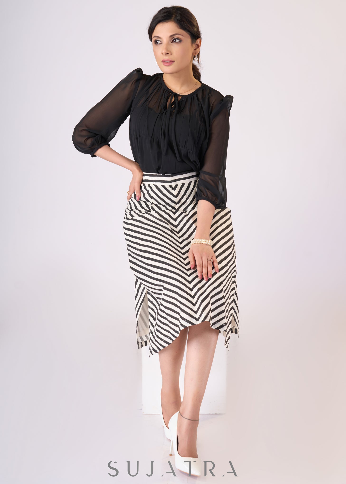Black georgette top with gathers & front tie-up with Slip - Skirt Additional