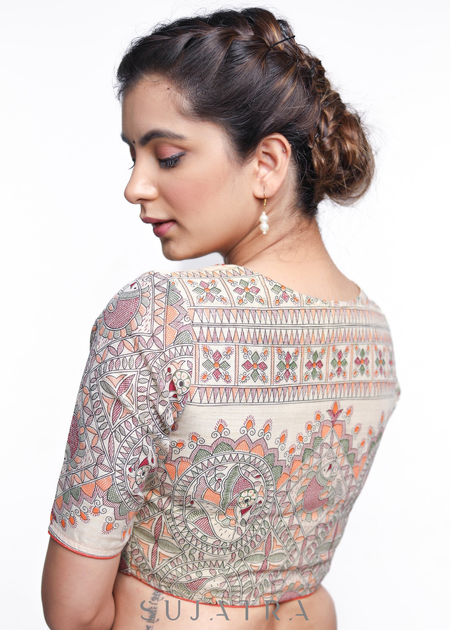 Exclusive Madhubani printed cotton blouse - Plain Saree Optional