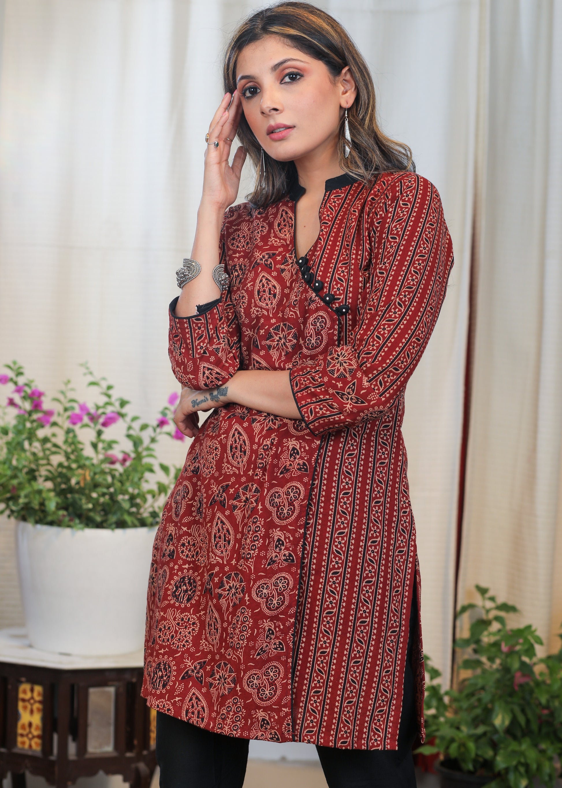 Elegant Cotton Ajrakh Combination Tunic