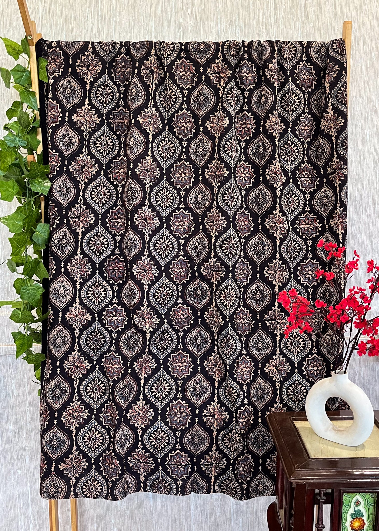 Cotton Black Mughal Ajrakh Fabric