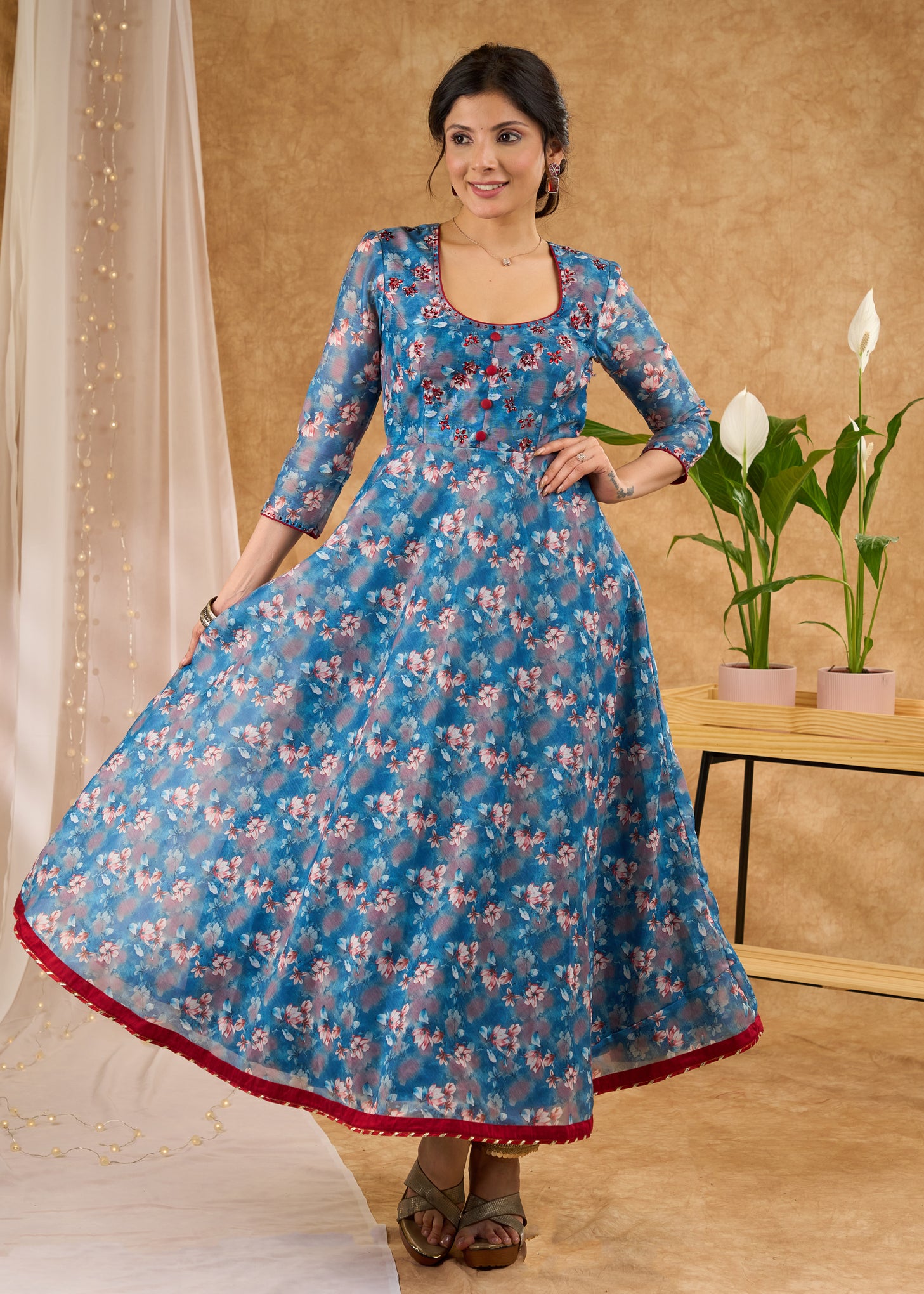 Elegant and smart printed chanderi flared kurta Pant optional