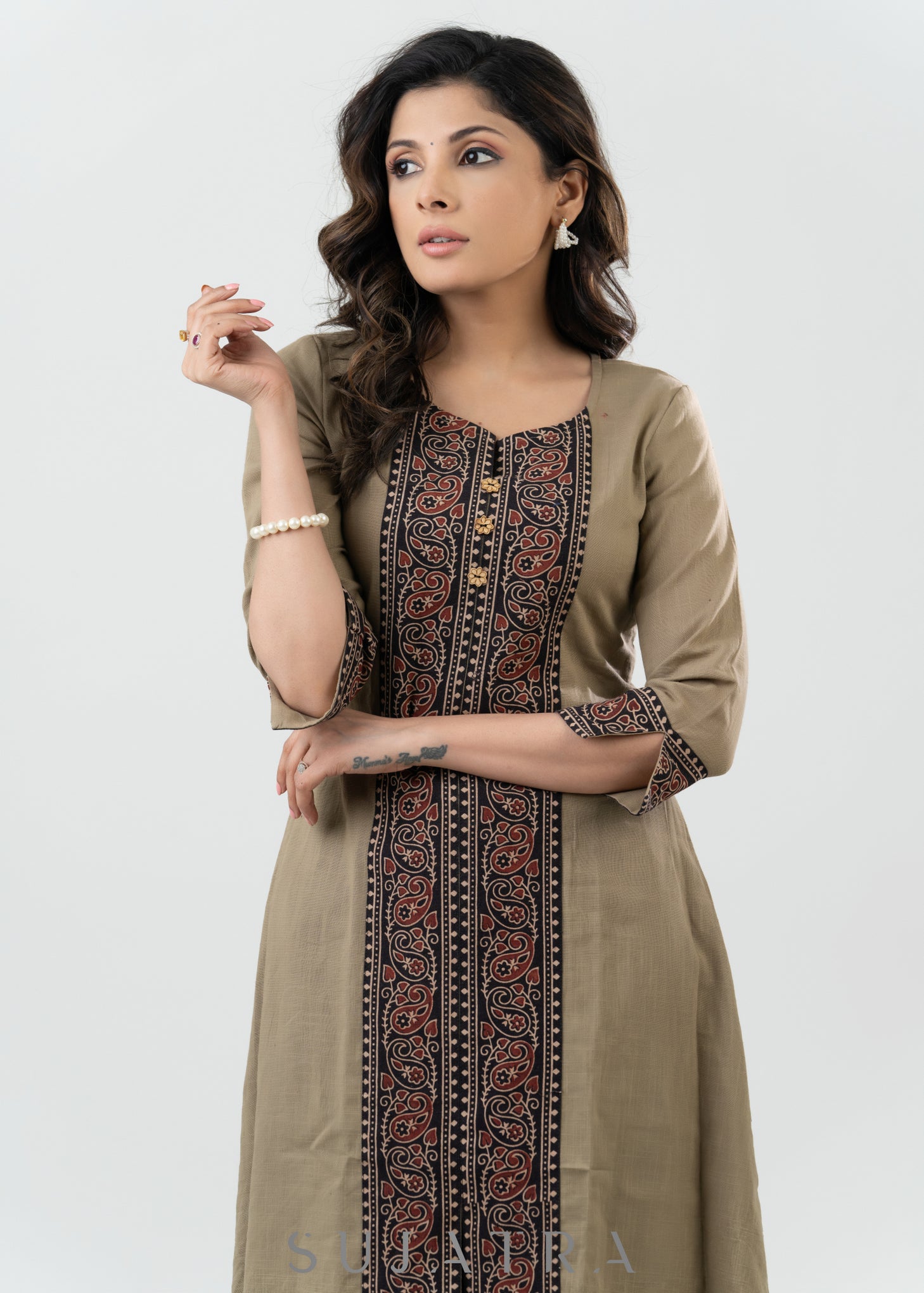 Elegant Cotton Ajrakh Combination Kurta - Pant Optional
