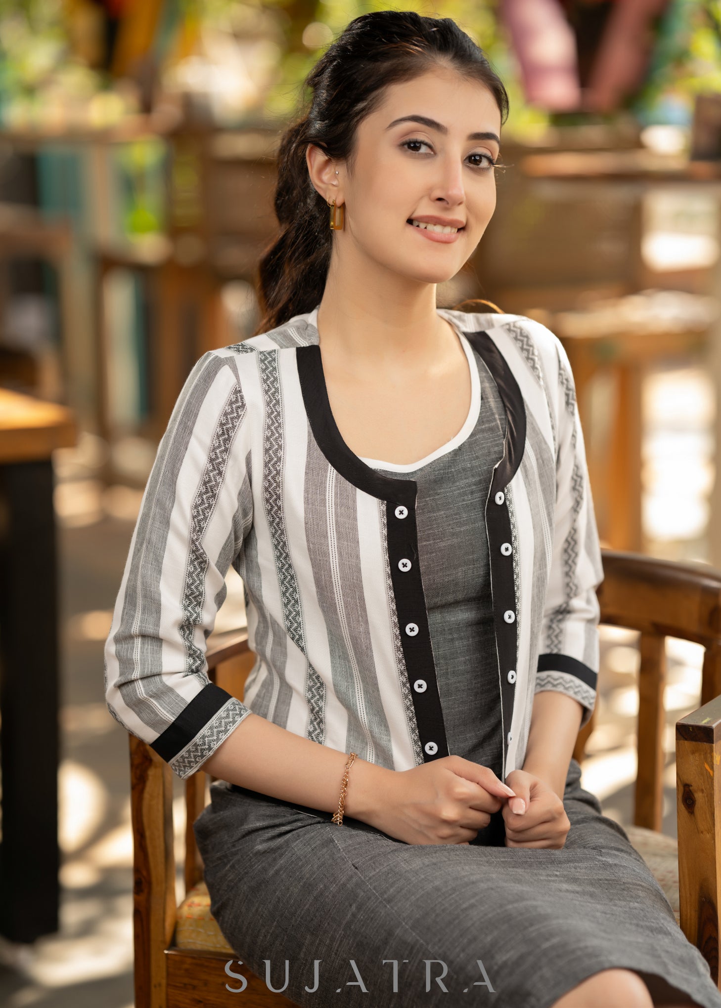 Elegant grey dress - Striped ikat jacket optional