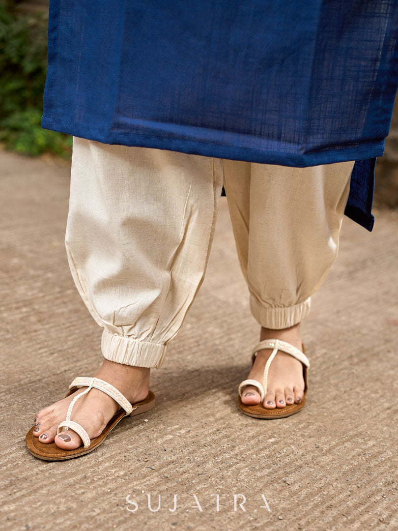 Elegant Navy Blue Cotton Kurta with Vibrant Printed Yoke & Statement Neckline