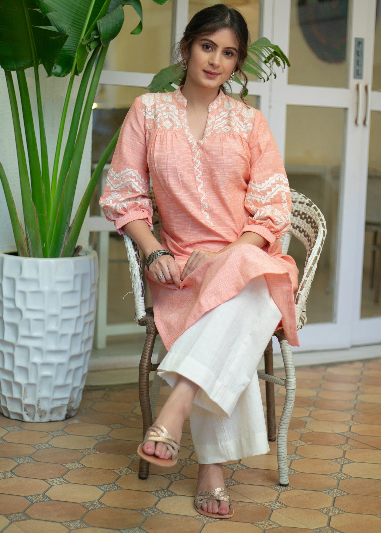 Exclusive Pure Cotton Peach Embroidered Kurta - Pant Optional