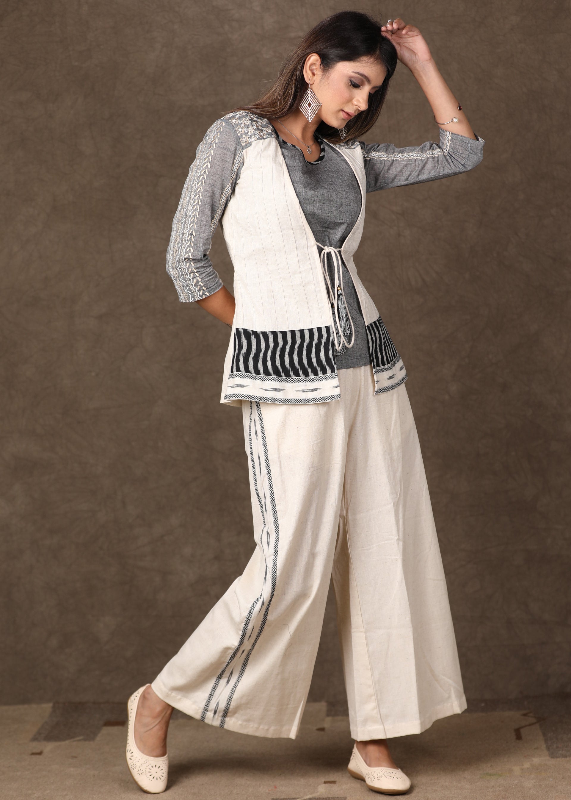 Grey White Combination of Inner and Front Open Shrug - 2 Piece (Shrug, Inner set) Pant Additional