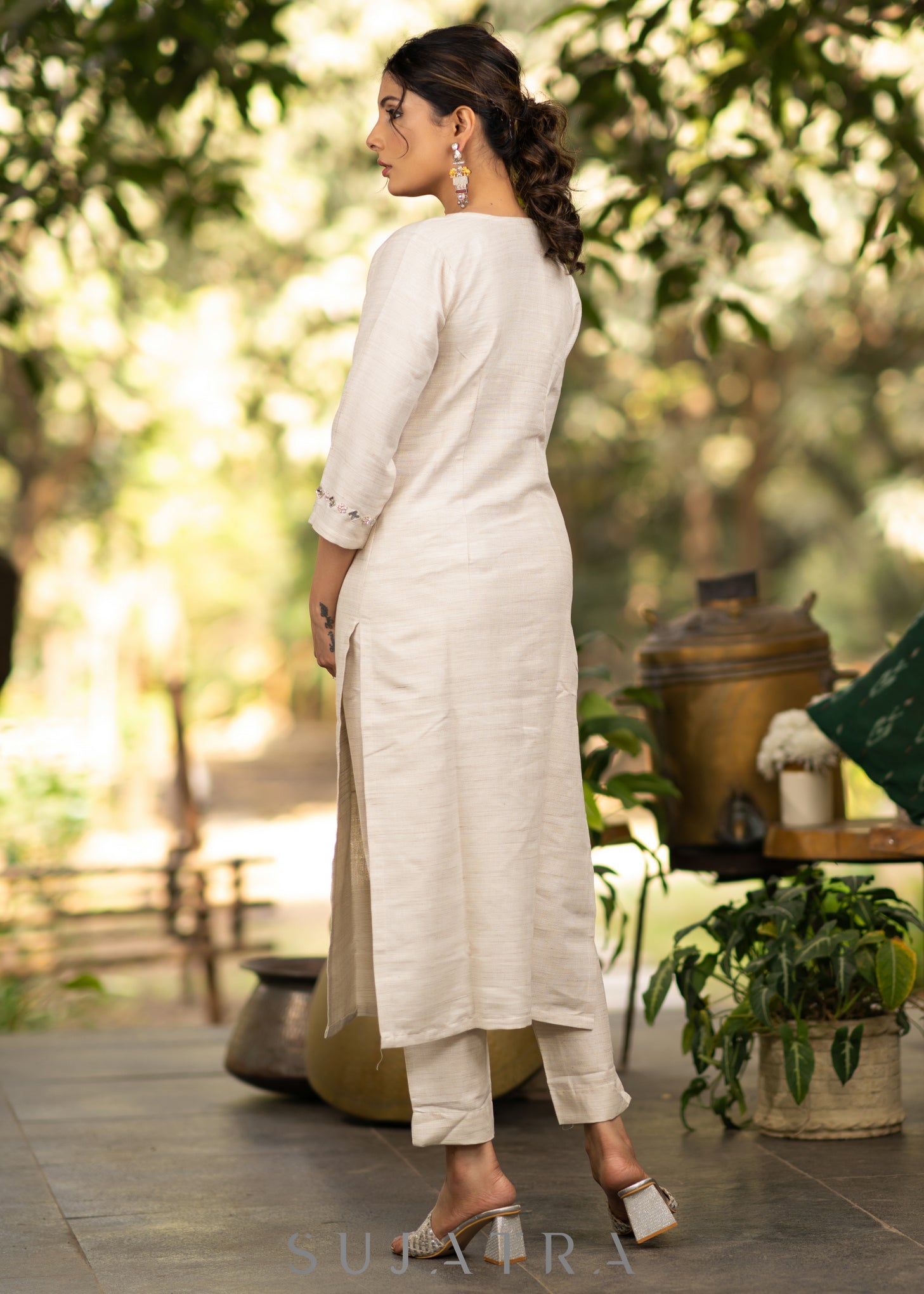 Handloom cotton kurta with stone embellished yoke - Pant optional
