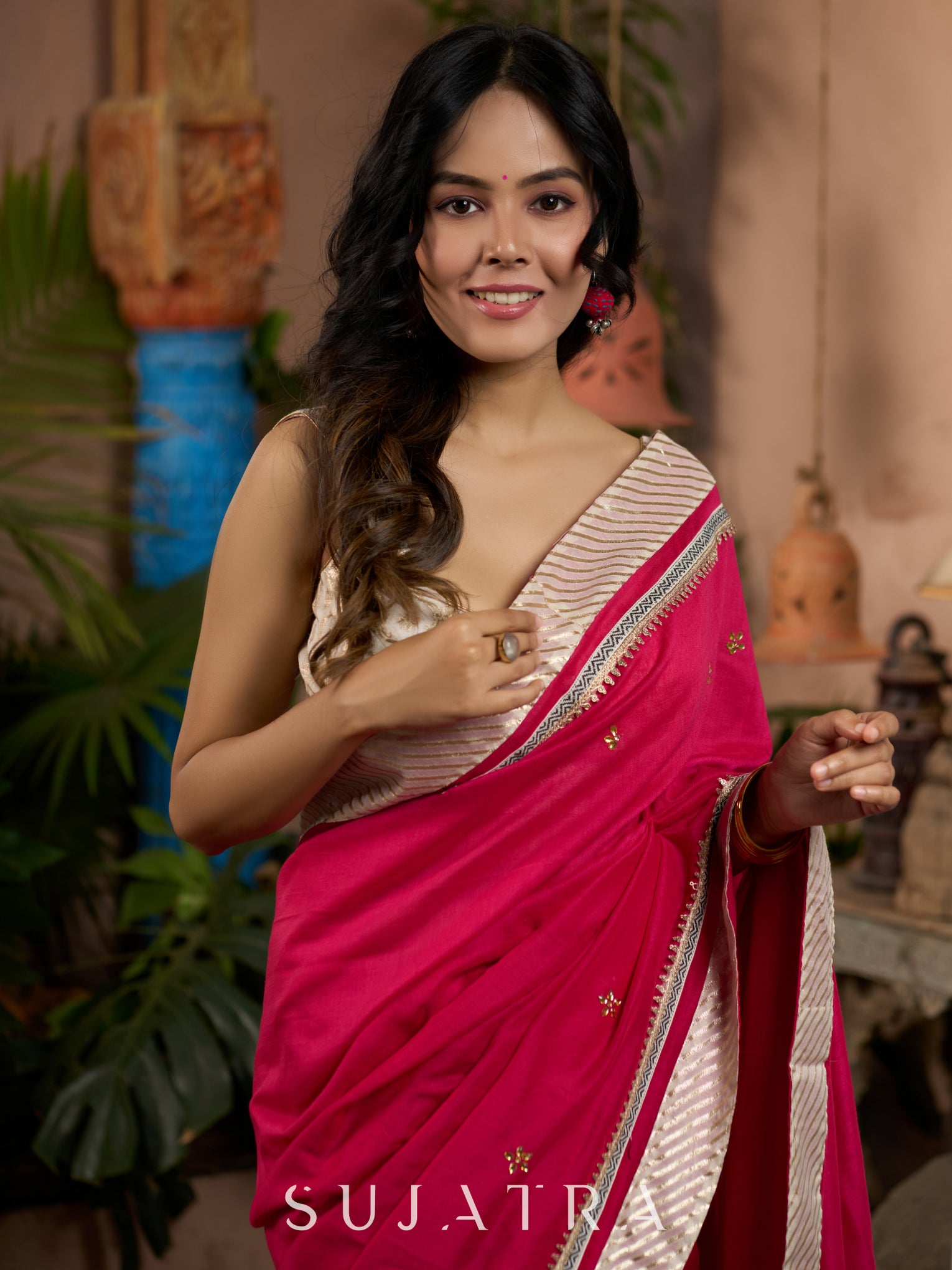Luxurious cotton saree with intricate hand embroidery and opulent Banarasi combination