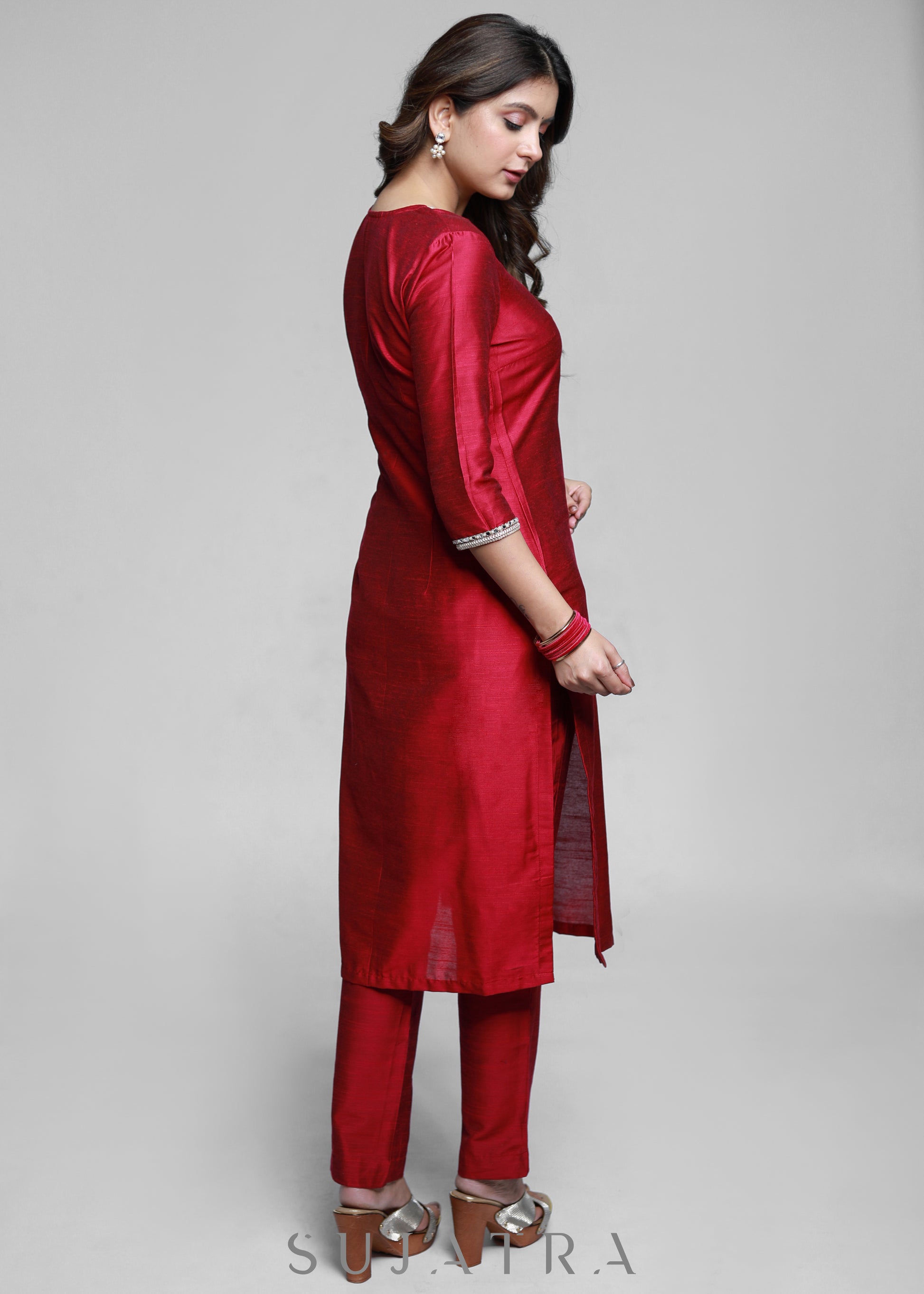 Magenta Cotton Silk Kurta With Handwork-Pant Optional