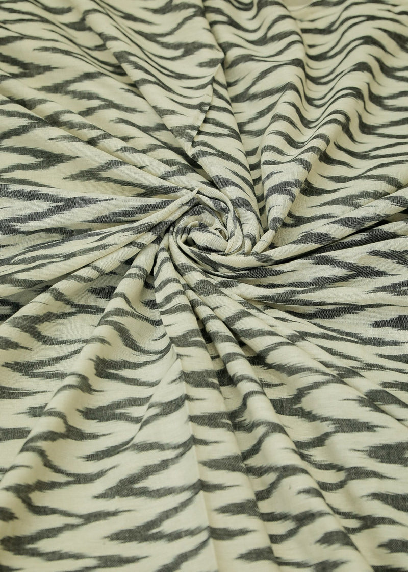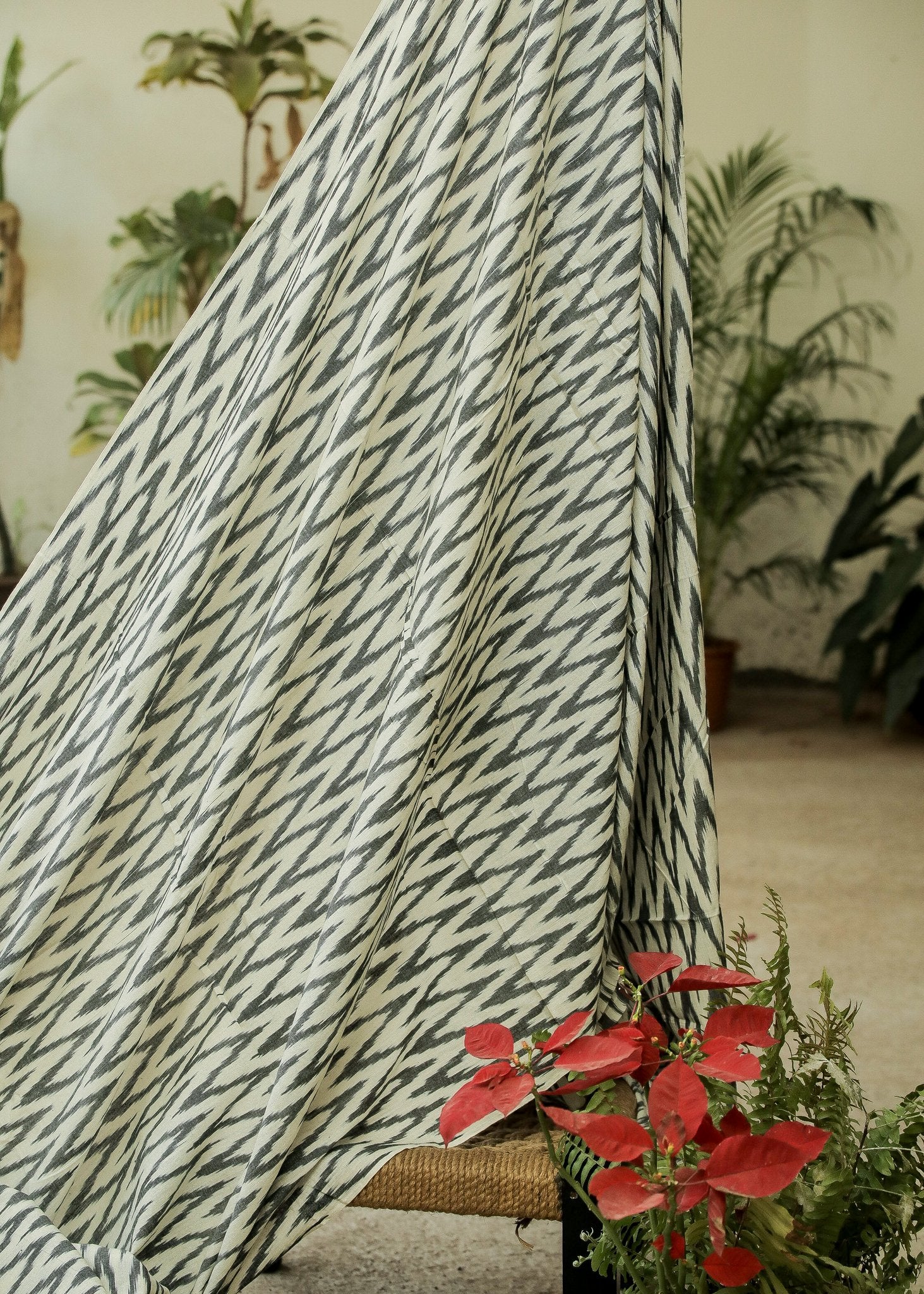 Pure Cotton Ikat Fabric with Black on White Zig Zag design