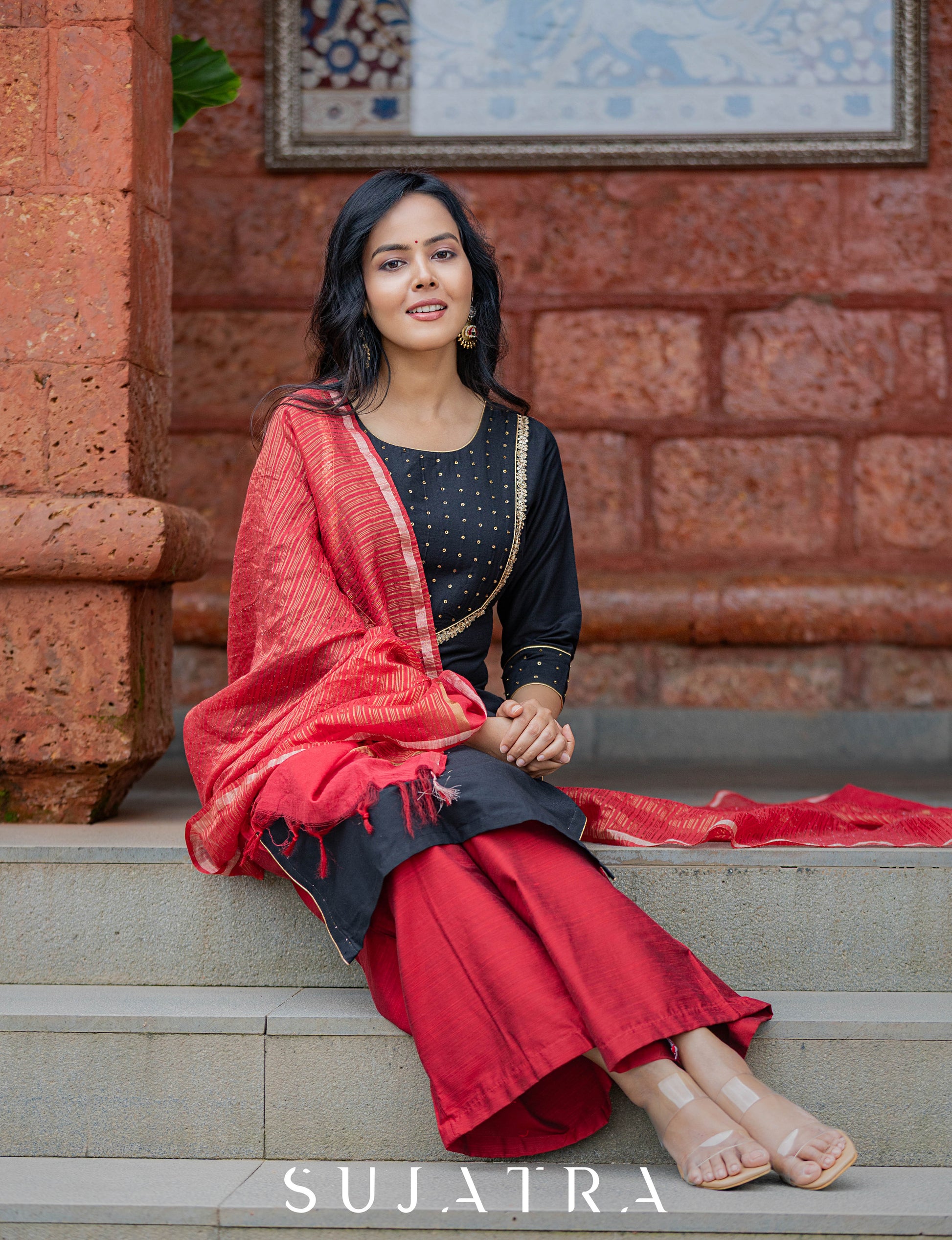 Saanjh Delicate Antique Hand Embroidered Cotton Silk Kurta