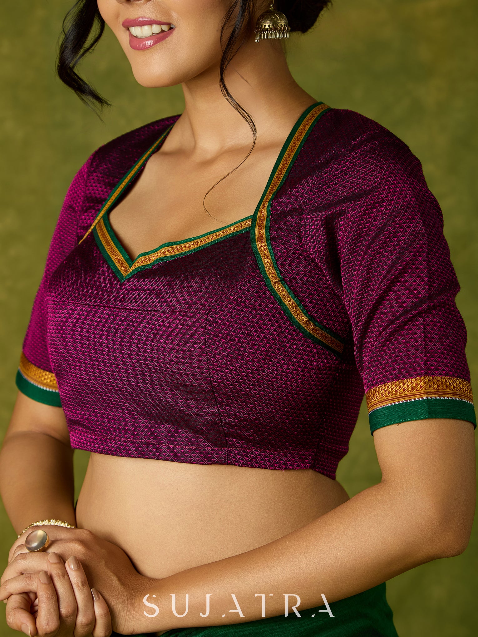Stylish purple khun blouse blending rich culture with modern flair.