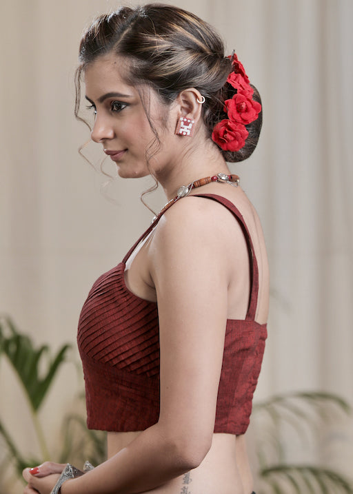 Trendy Maroon Pin Tuck Handloom Cotton Blouse. Lining Given