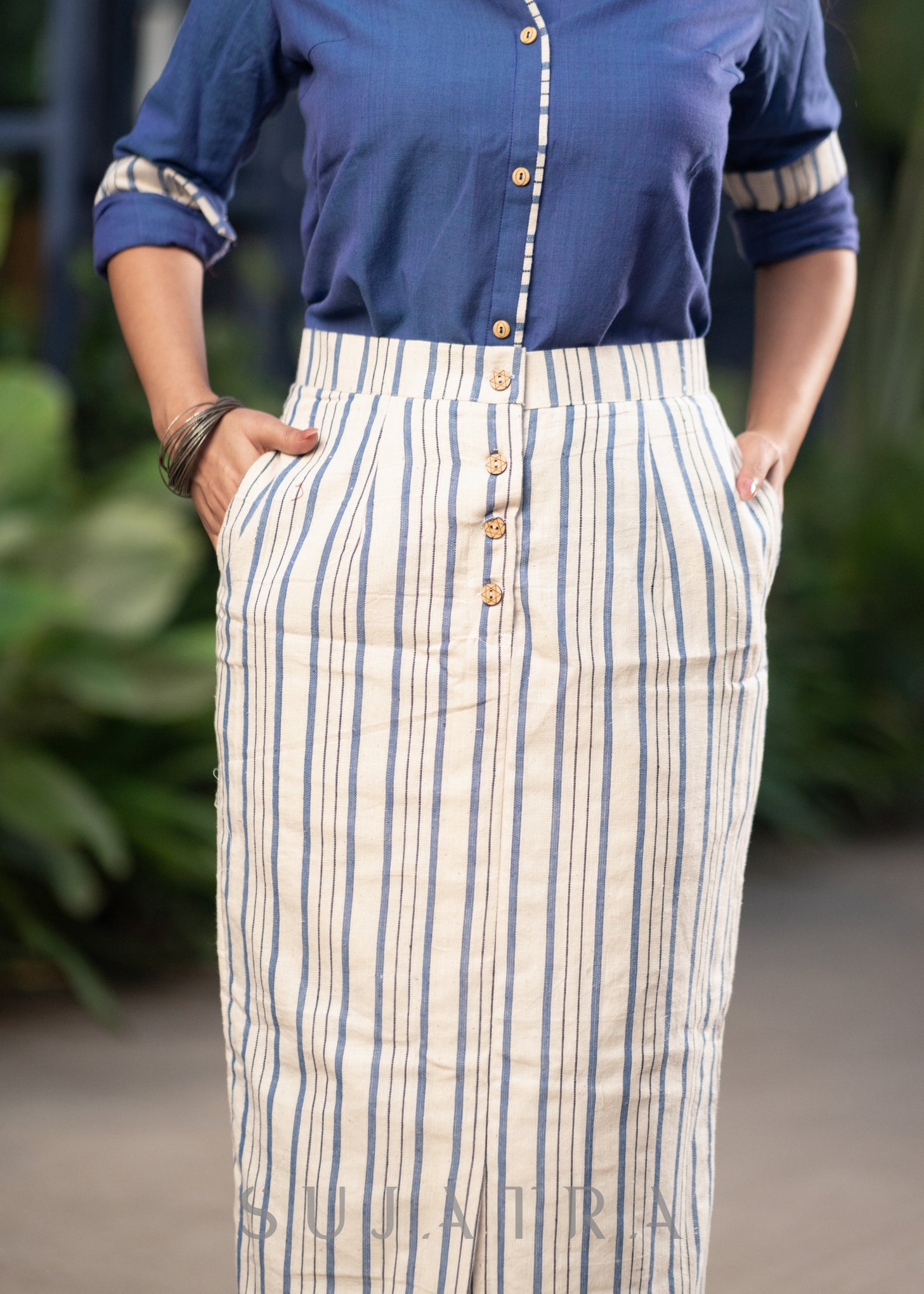 Trendy Striped White IndoWestern Skirt - Cotton Blue Shirt Optional